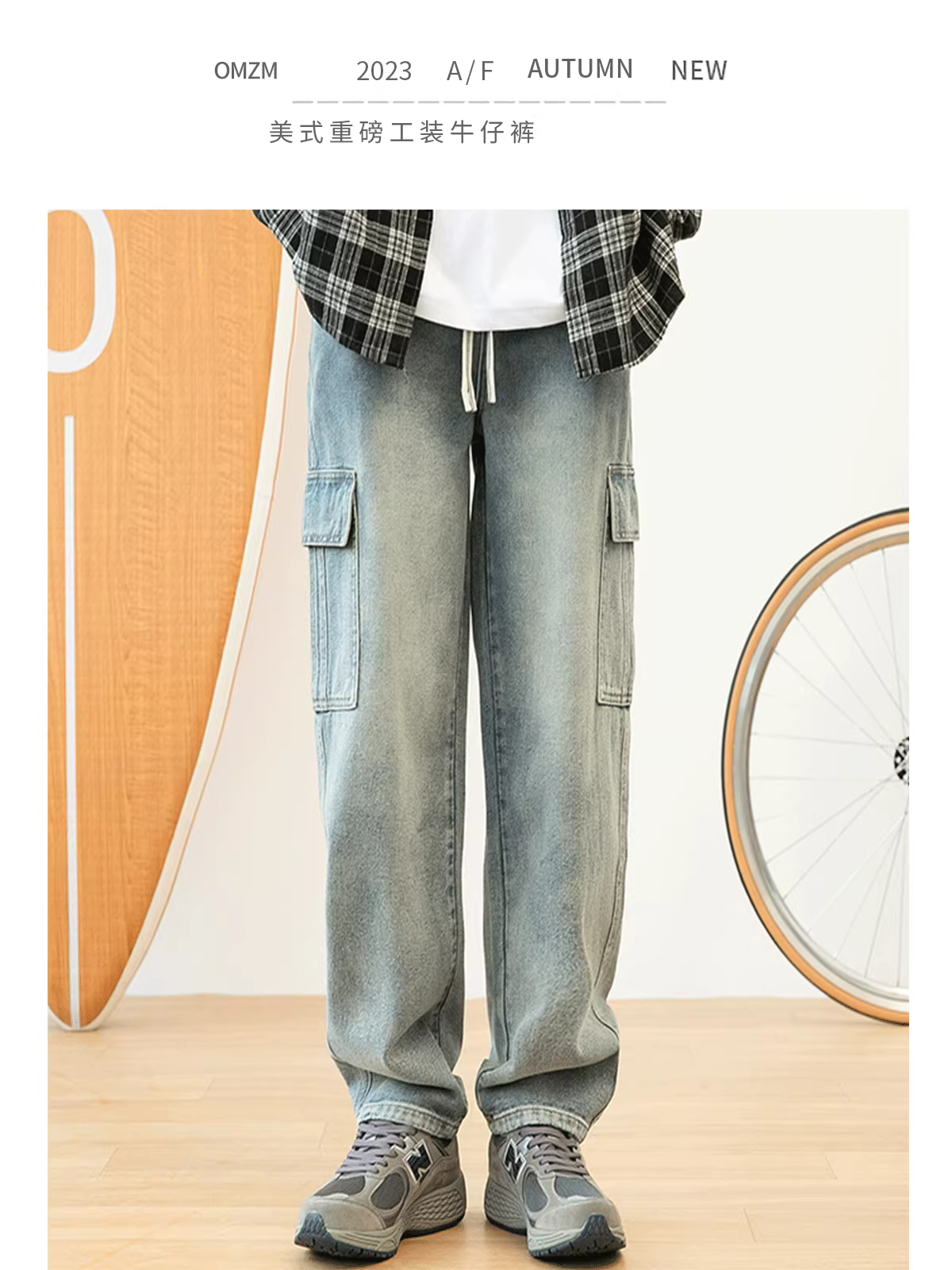 - Quần jean công sở nhiều túi hạng nặng OMZM dành cho nam, quần ống thẳng thương hiệu thời trang đường phố cao cấp mùa xuân và mùa thu, quần dài dây rút kiểu cổ điển