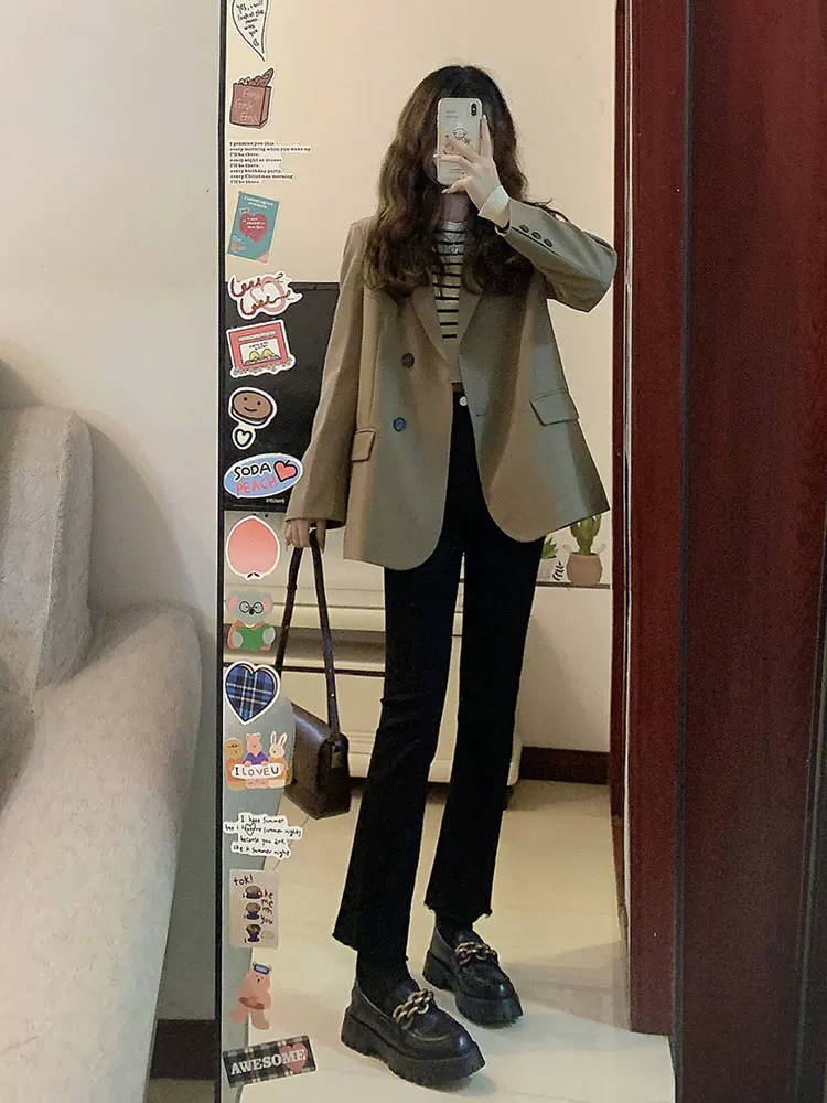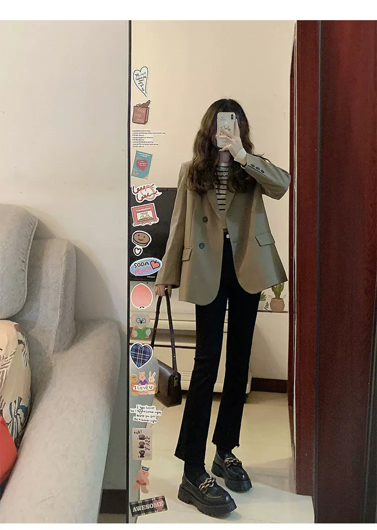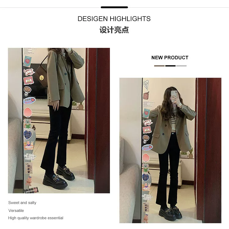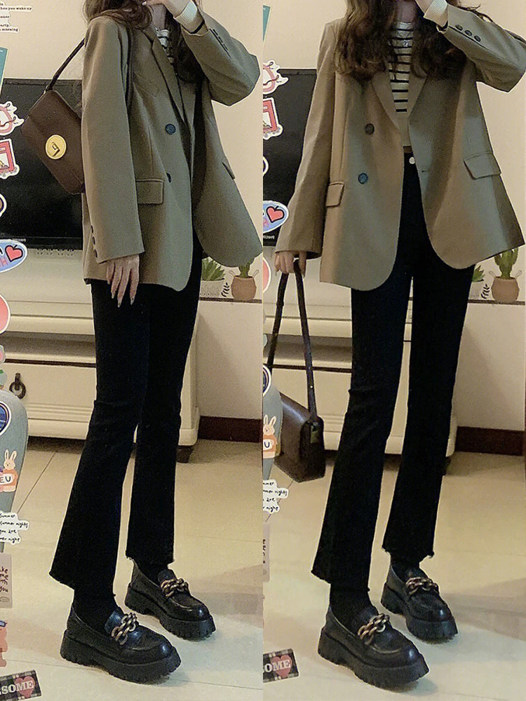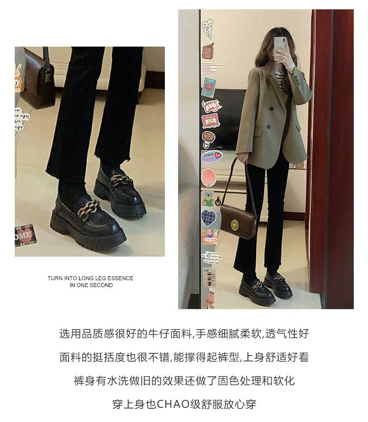 - Quần jean dáng chuông dành cho nữ, size lớn, dáng hơi mũm mĩm, mặc đầu thu, cạp cao, co giãn, che hông, ống thẳng, quần lửng