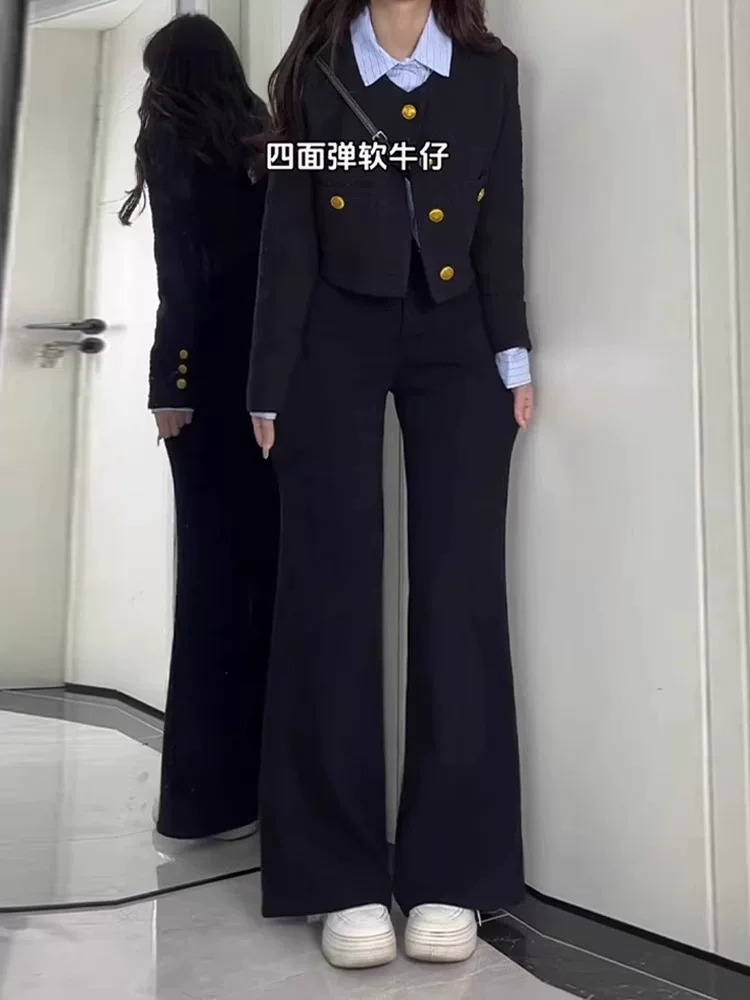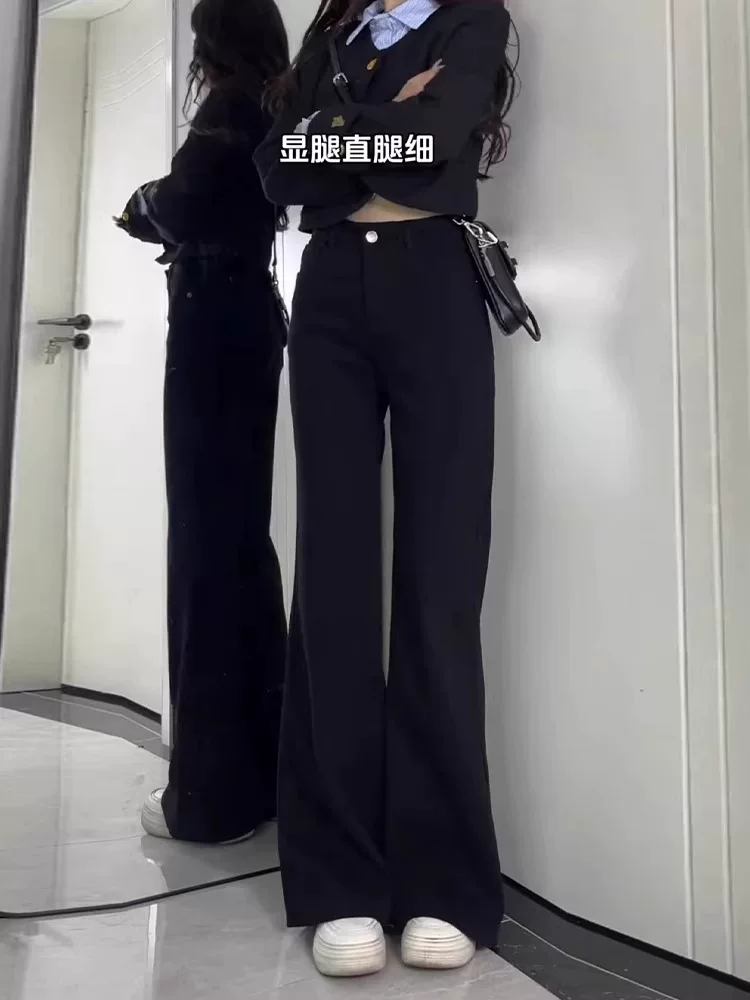 - Quần jean dáng chuông dành cho nữ, size lớn mùa thu, cạp cao, co giãn, che hông, tôn dáng, quần ống đứng dáng chuông