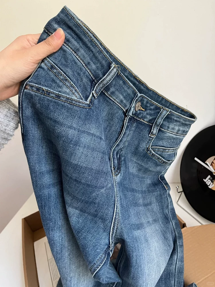 - Quần jean dáng chuông dành cho nữ, size lớn mùa xuân, cạp cao, co giãn, che hông, tôn dáng, quần dài ống loe