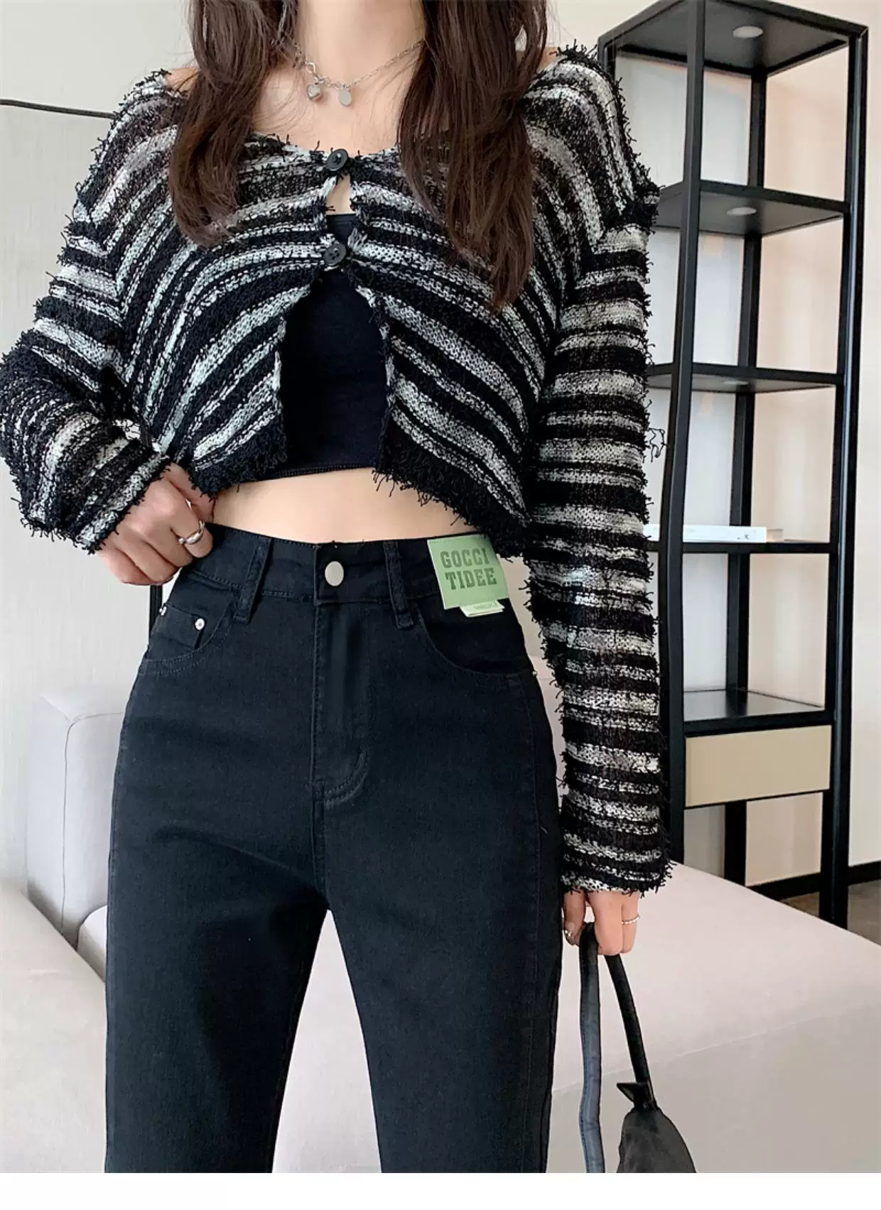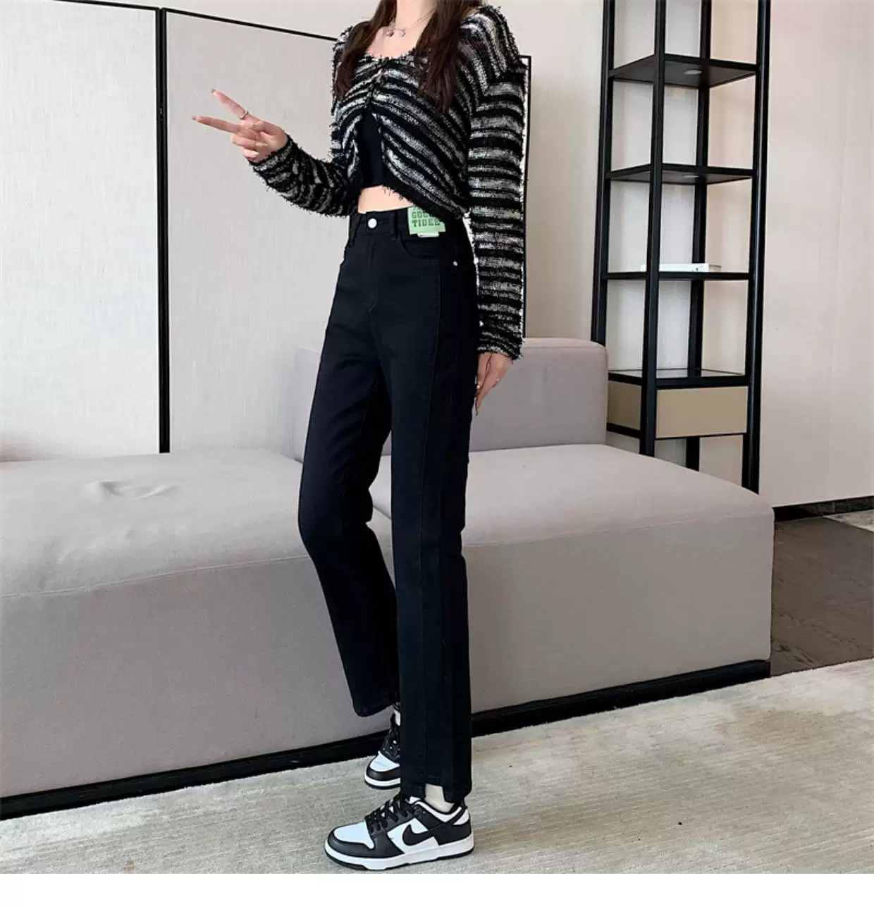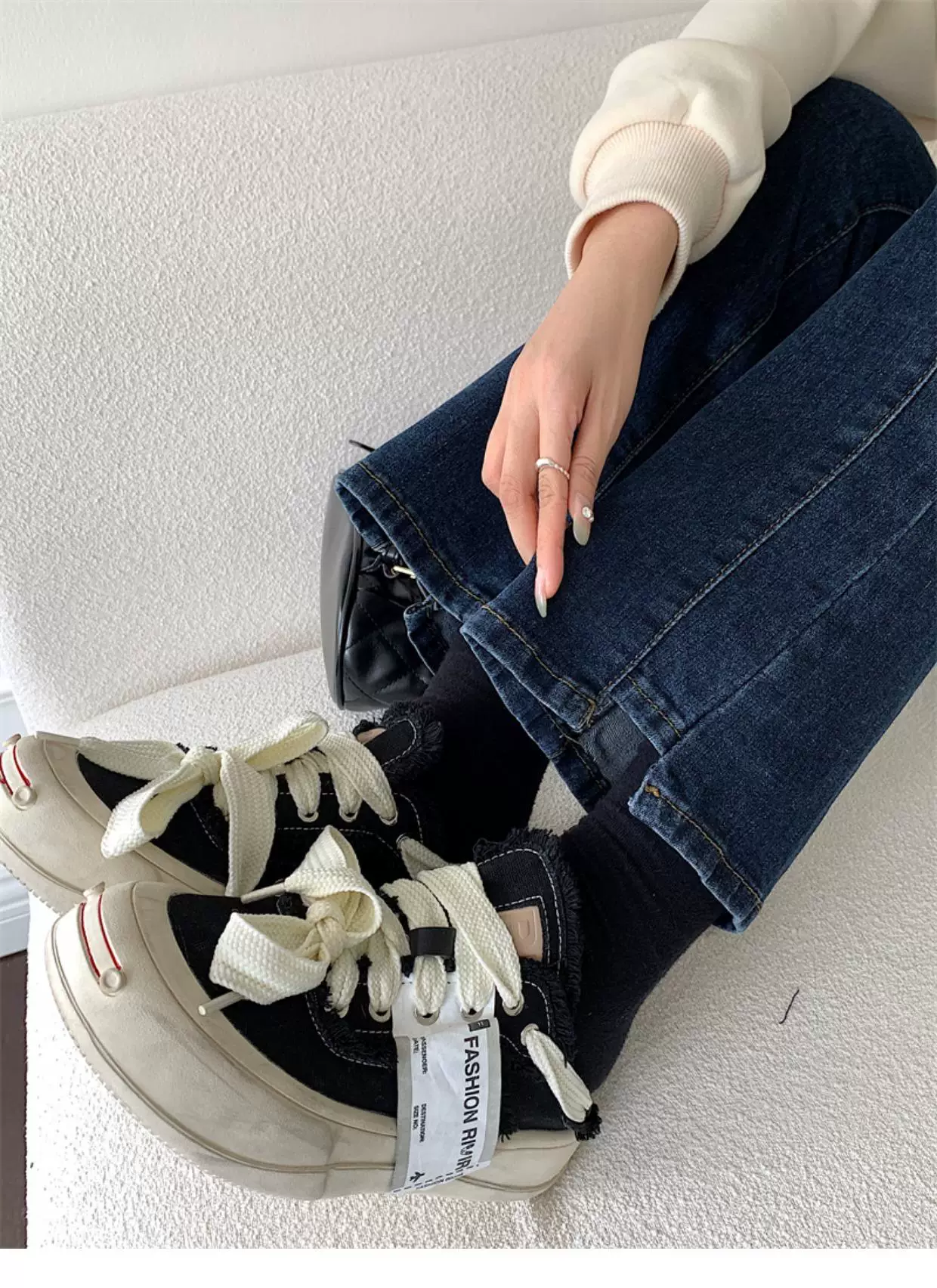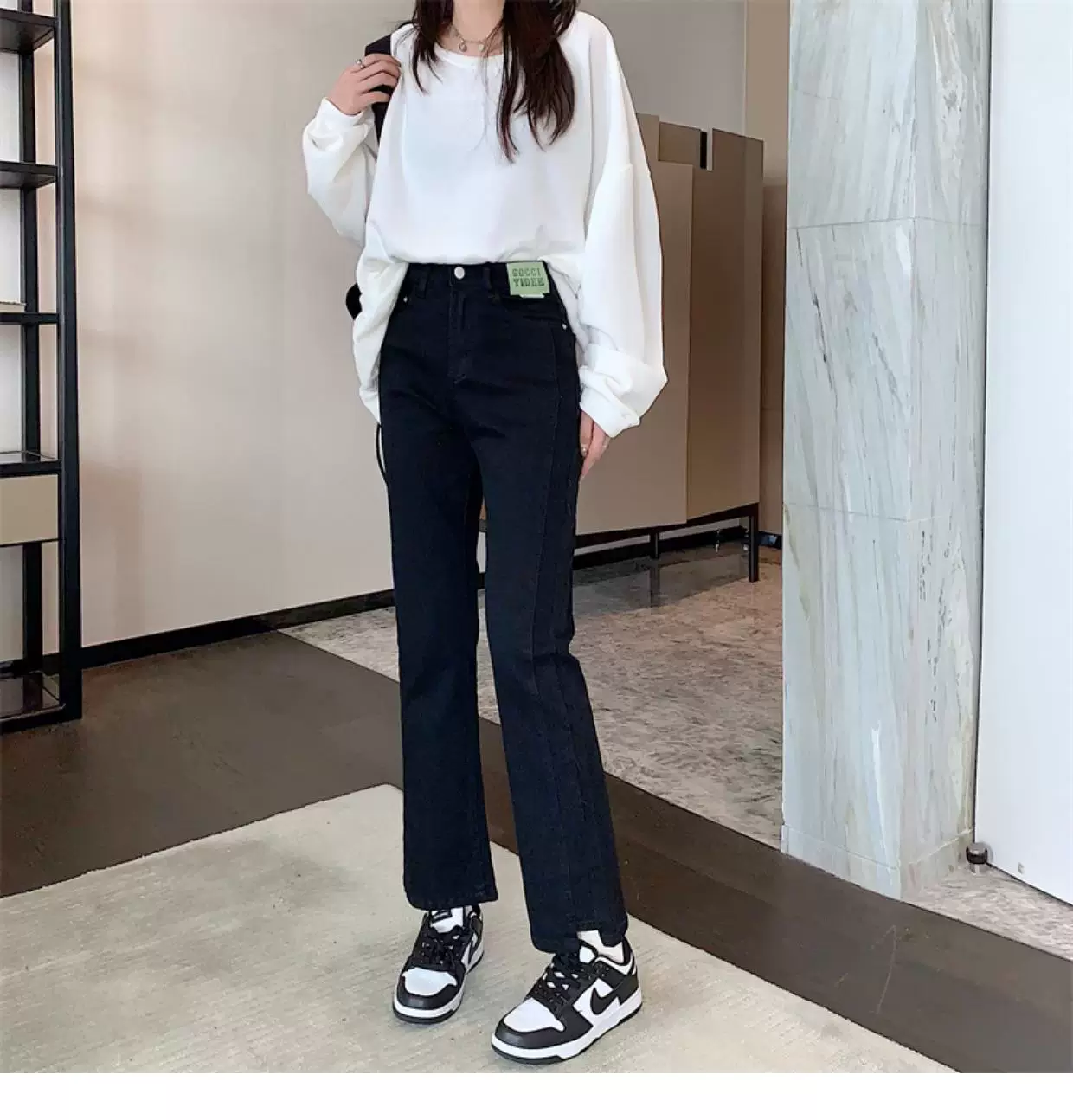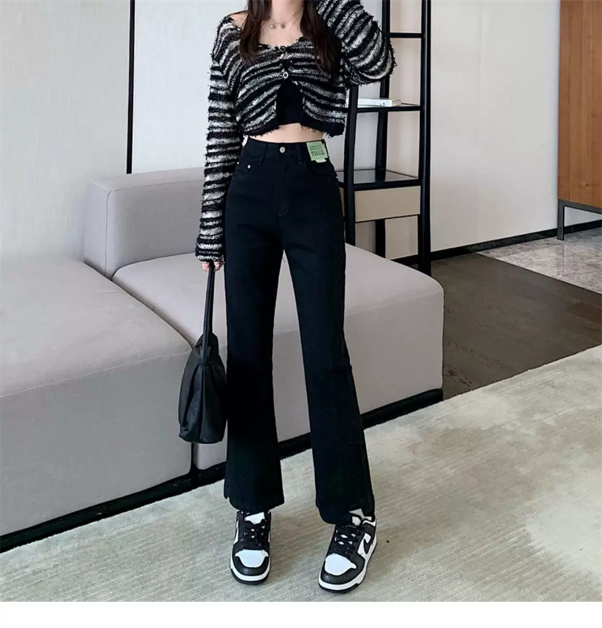- Quần jean dáng chuông nhỏ nhắn dành cho mùa thu đông, lót lông cừu, hơi mũm mĩm, cạp cao, che hông, quần ống đứng tôn dáng
