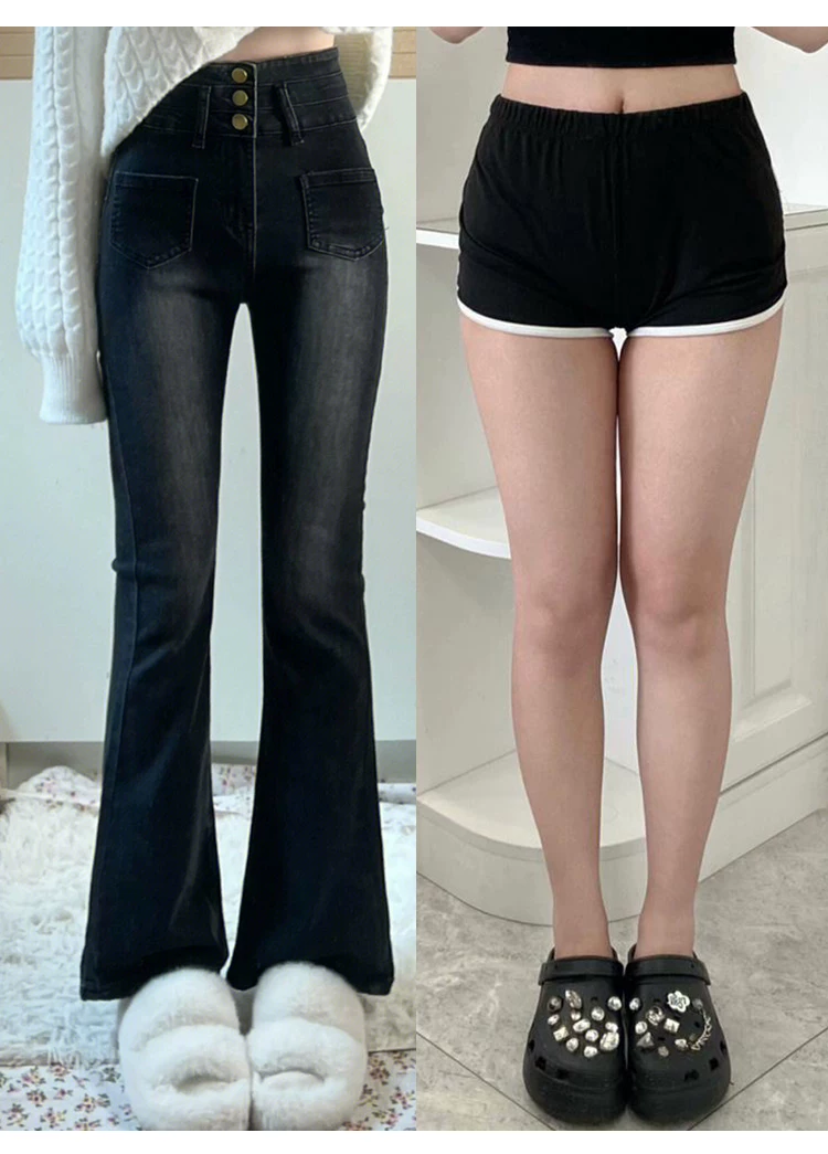 - Quần jean dáng chuông, ống thẳng hơi loe dành cho nữ, phong cách đầu thu, size lớn, cạp cao, co giãn, che hông, quần loe tôn dáng