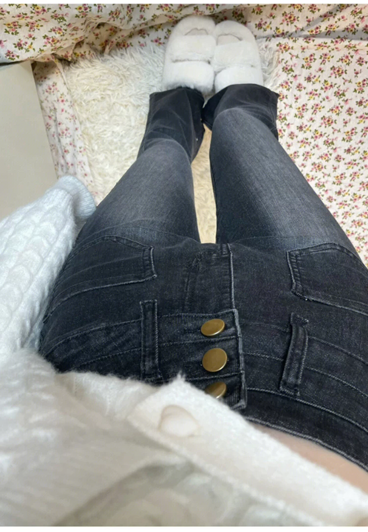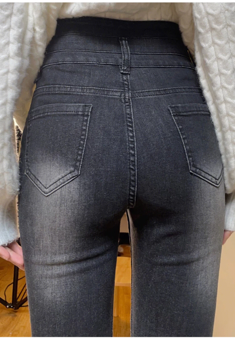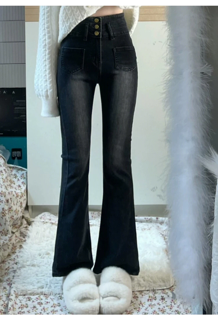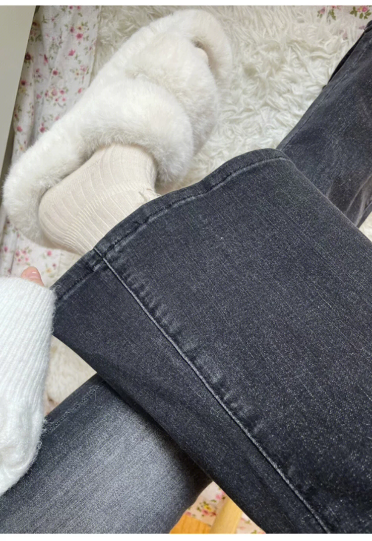 Quần jean dáng chuông, ống thẳng hơi loe dành cho nữ, phong cách đầu thu, size lớn, cạp cao, co giãn, che hông, quần loe tôn dáng