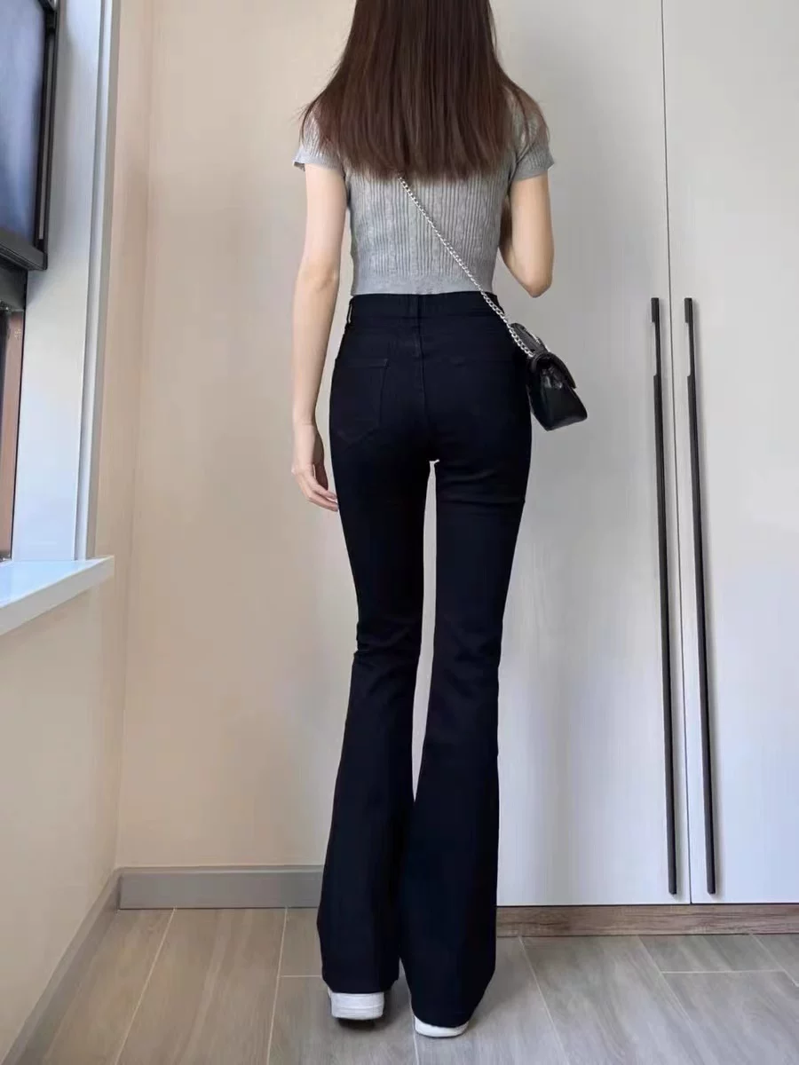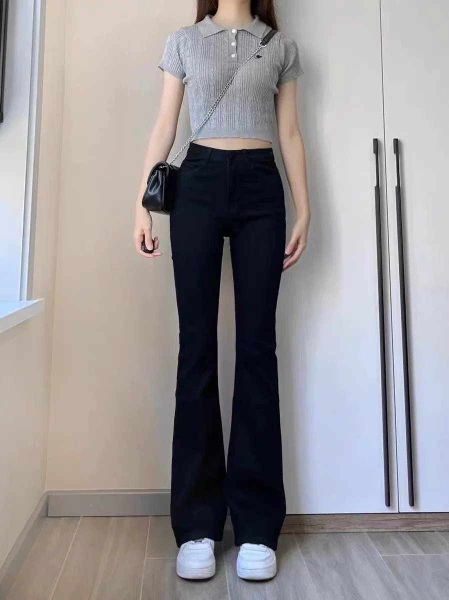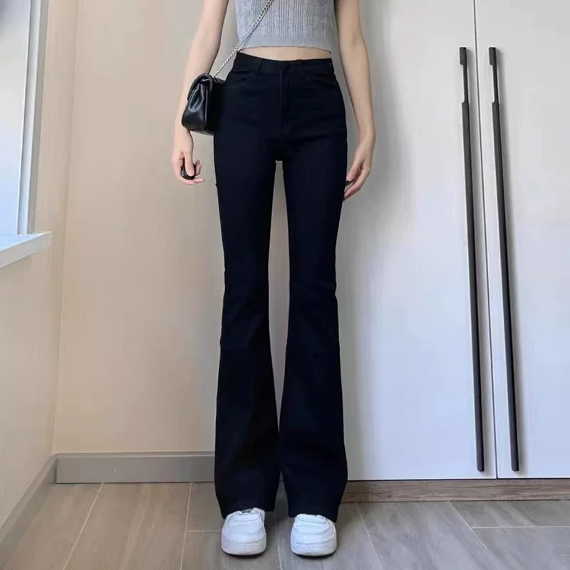 Quần jean dáng chuông, ống thẳng hơi loe dành cho nữ, size lớn, phong cách đầu thu, cạp cao, co giãn, che hông, quần bootcut tôn dáng