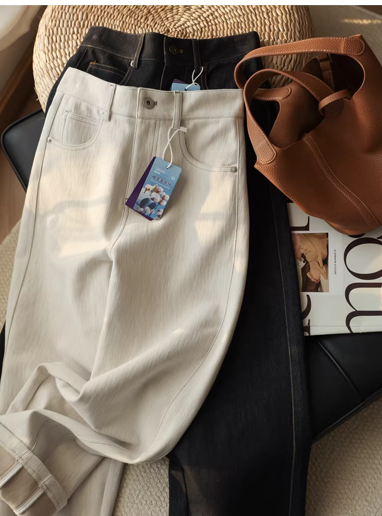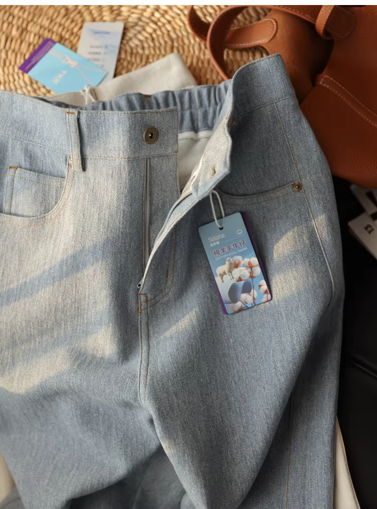 Quần jean dáng dài, chất liệu len cừu co giãn bốn chiều, cạp cao, tôn dáng, rộng rãi, thoải mái, dành cho nữ mùa thu.