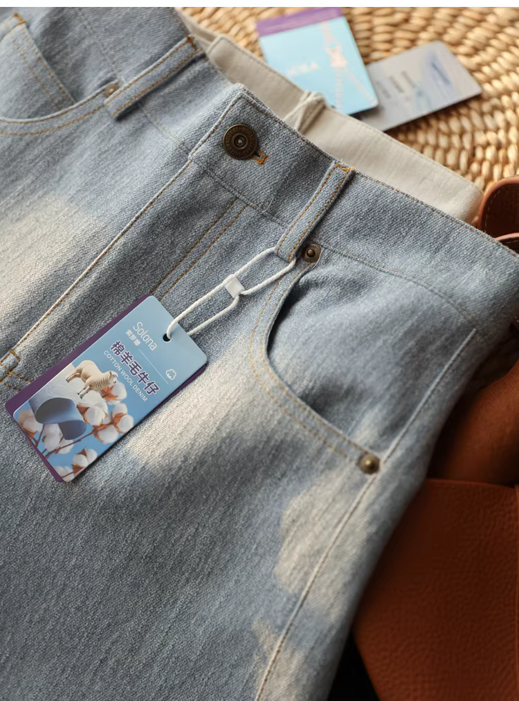 - Quần jean dáng dài, chất liệu len cừu co giãn bốn chiều, cạp cao, tôn dáng, rộng rãi, thoải mái, dành cho nữ mùa thu.