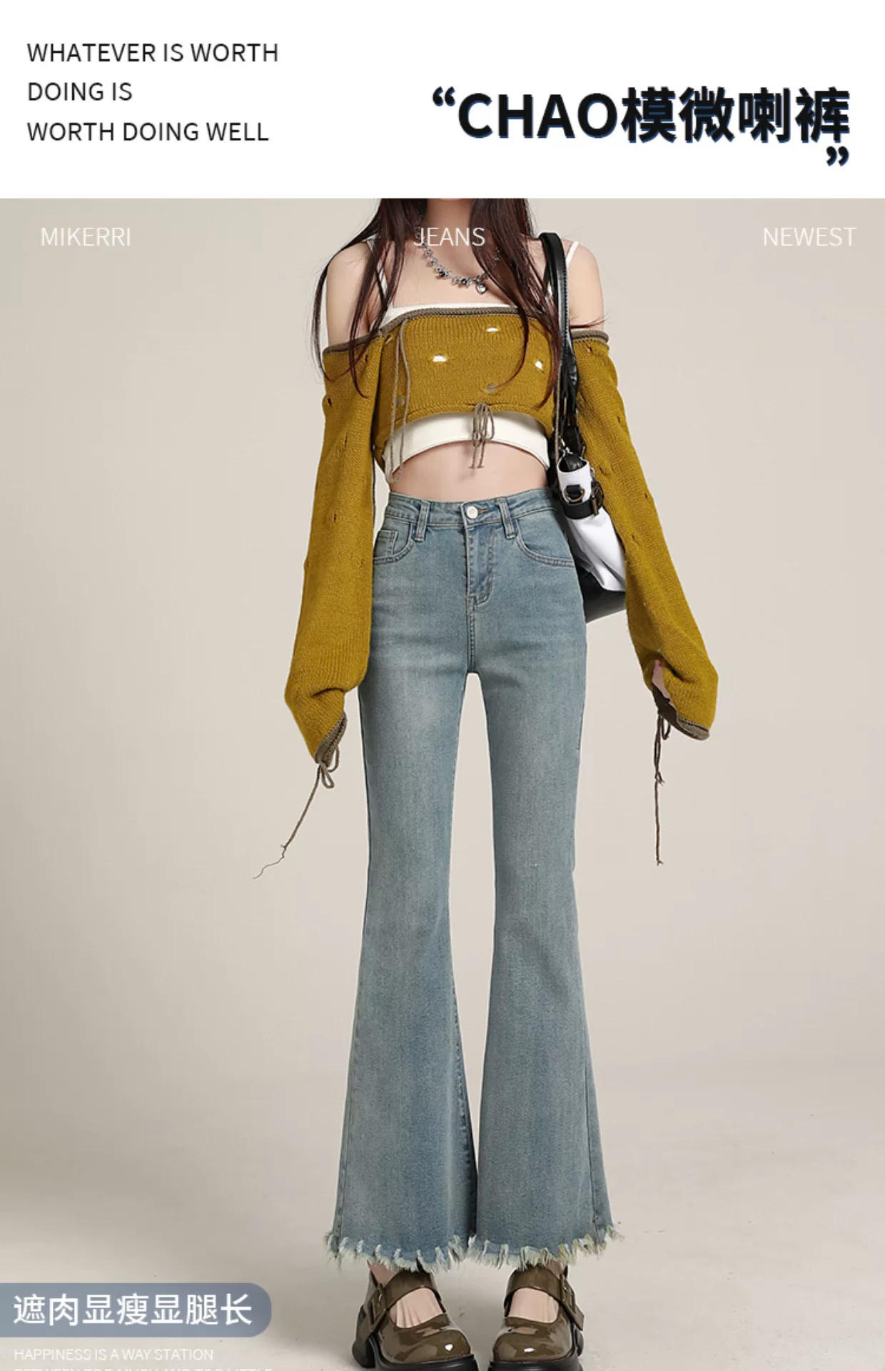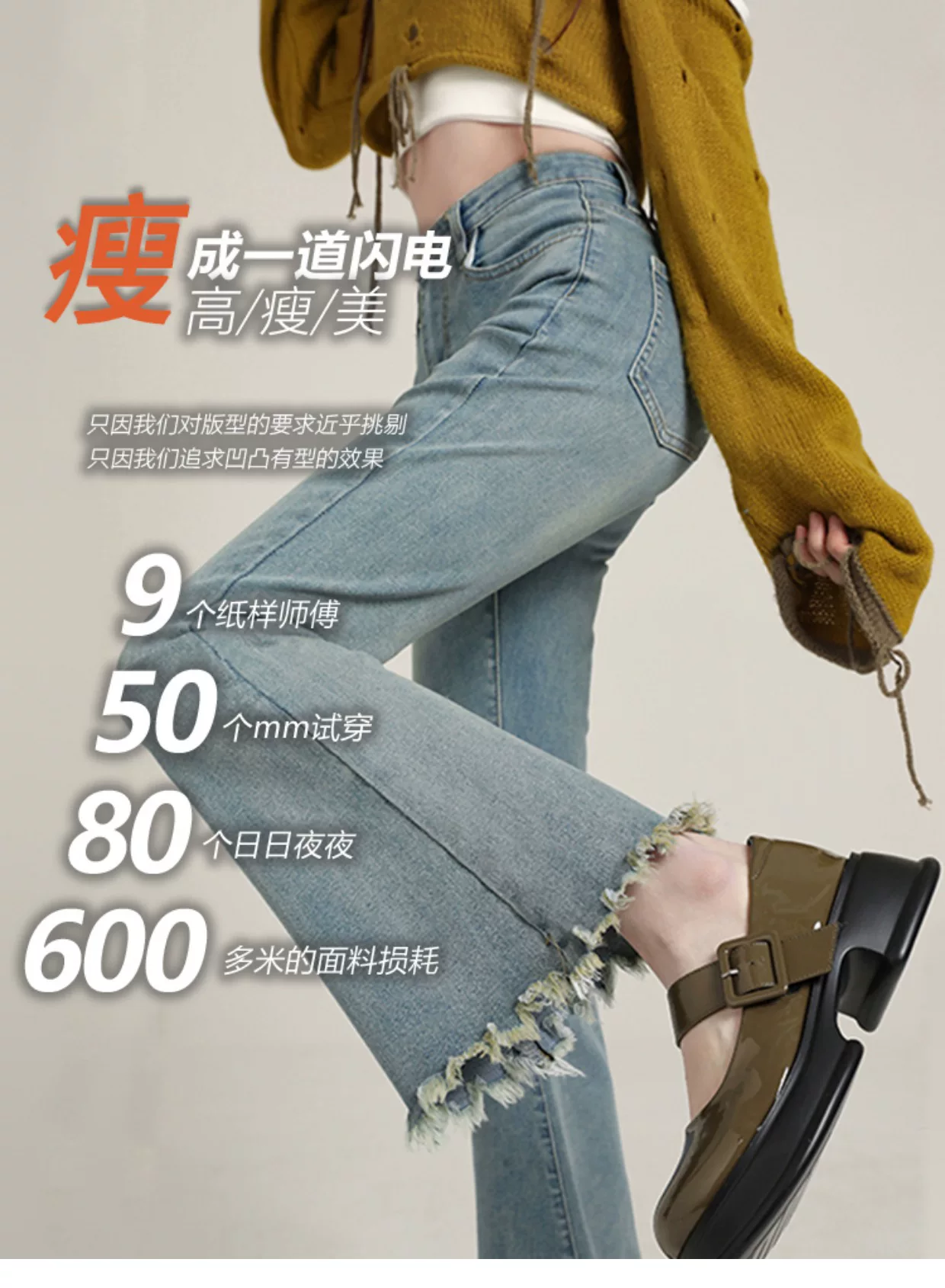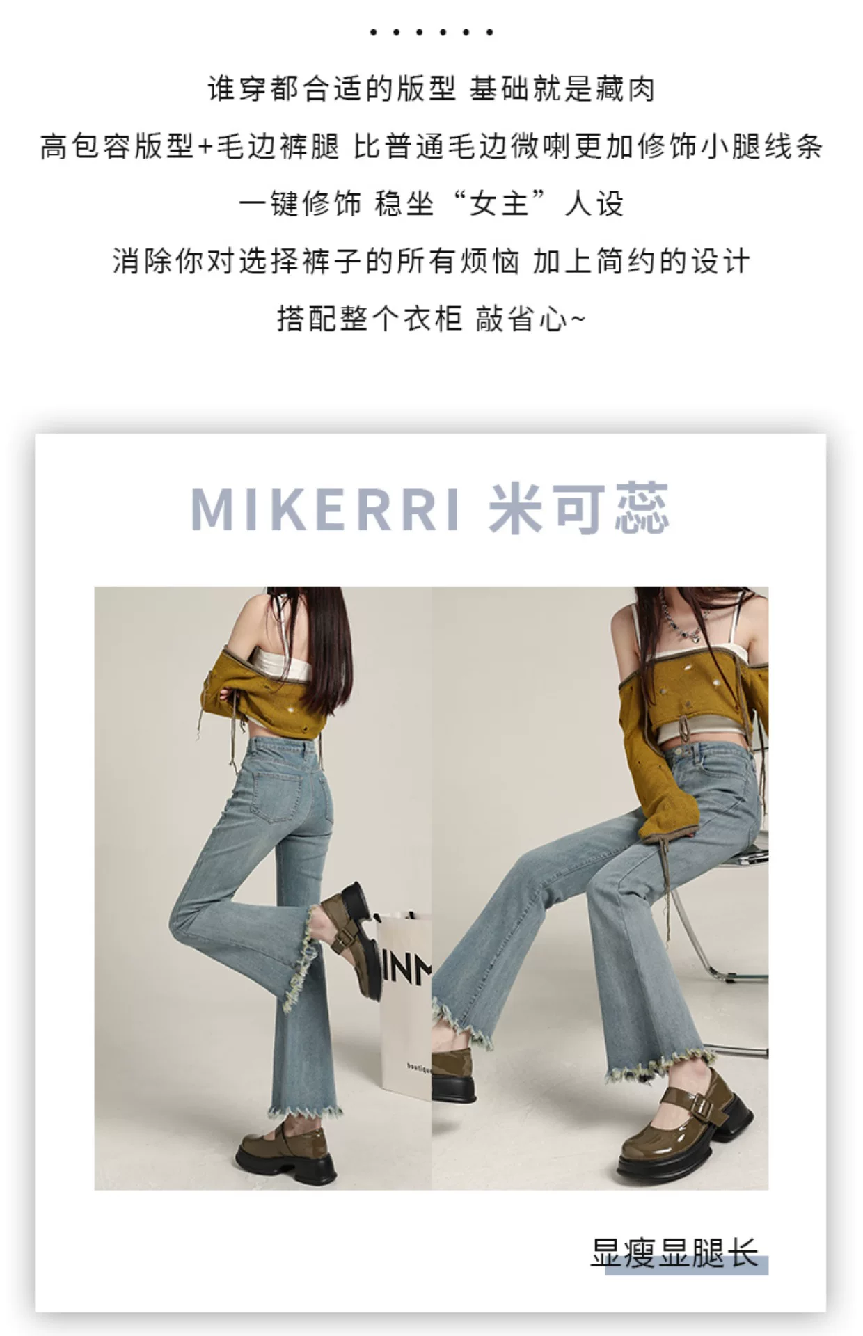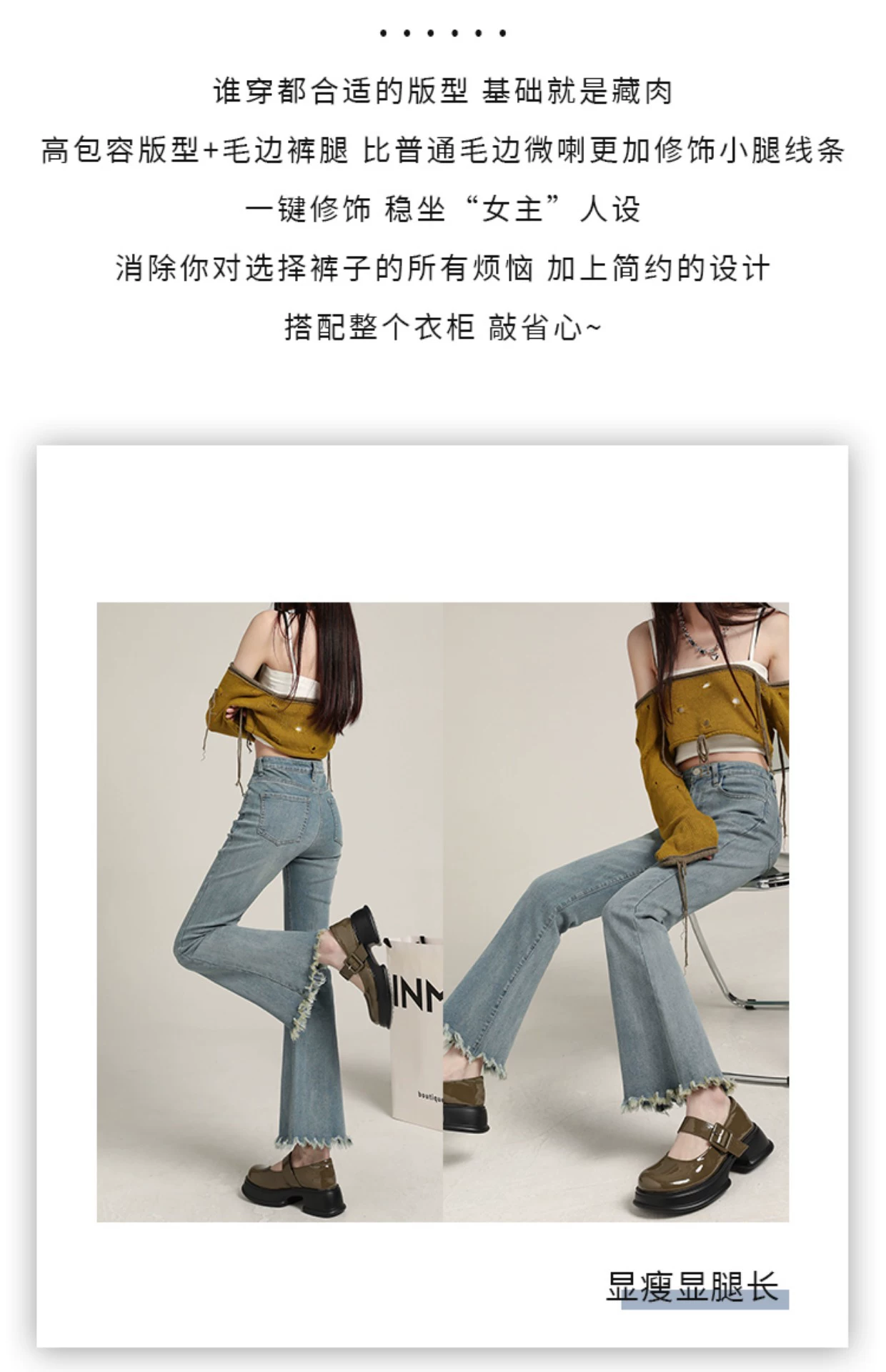 - Quần jean dáng lửng, vạt xéo, kiểu dáng đầu thu, size lớn, cạp cao, co giãn, che hông, quần ống rộng tôn dáng dành cho nữ