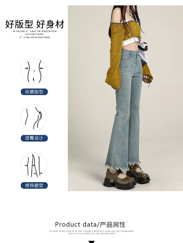 Quần jean dáng lửng, vạt xéo, kiểu dáng đầu thu, size lớn, cạp cao, co giãn, che hông, quần ống rộng tôn dáng dành cho nữ