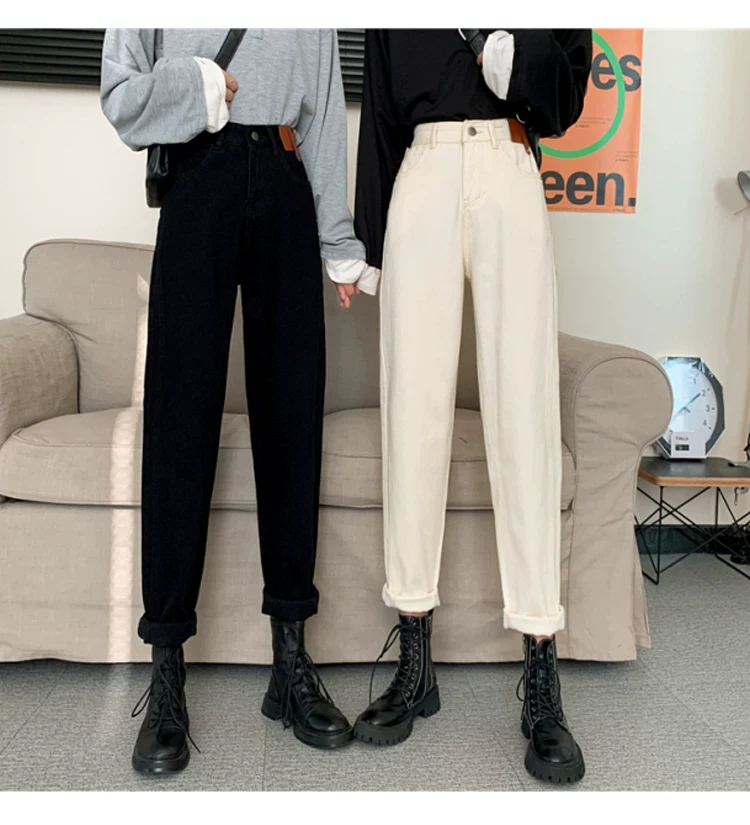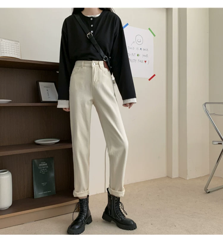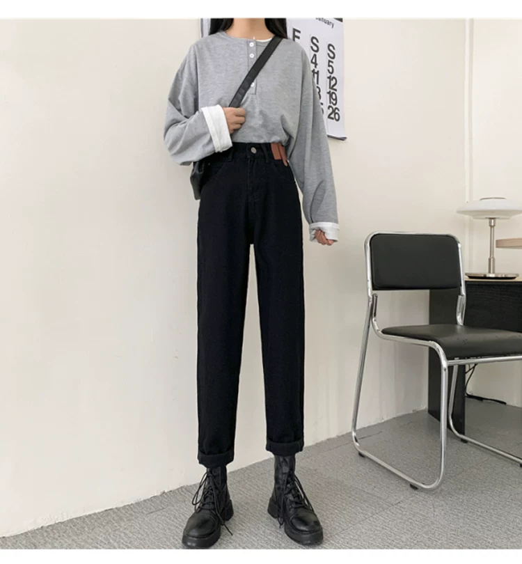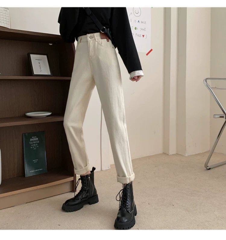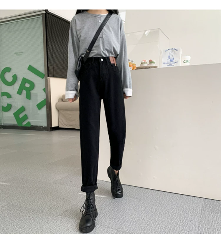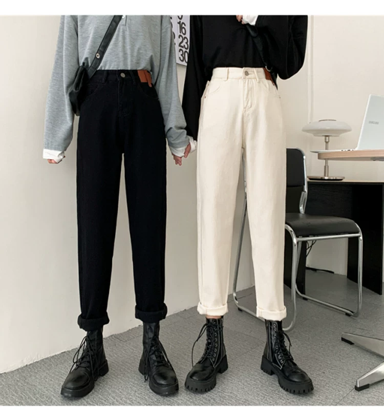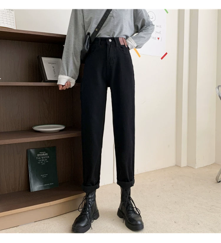 - Quần jean dáng quả lê dành cho nữ 2022 phong cách đầu thu cỡ lớn béo mm quần ống rộng che hông dáng thẳng eo cao giảm béo