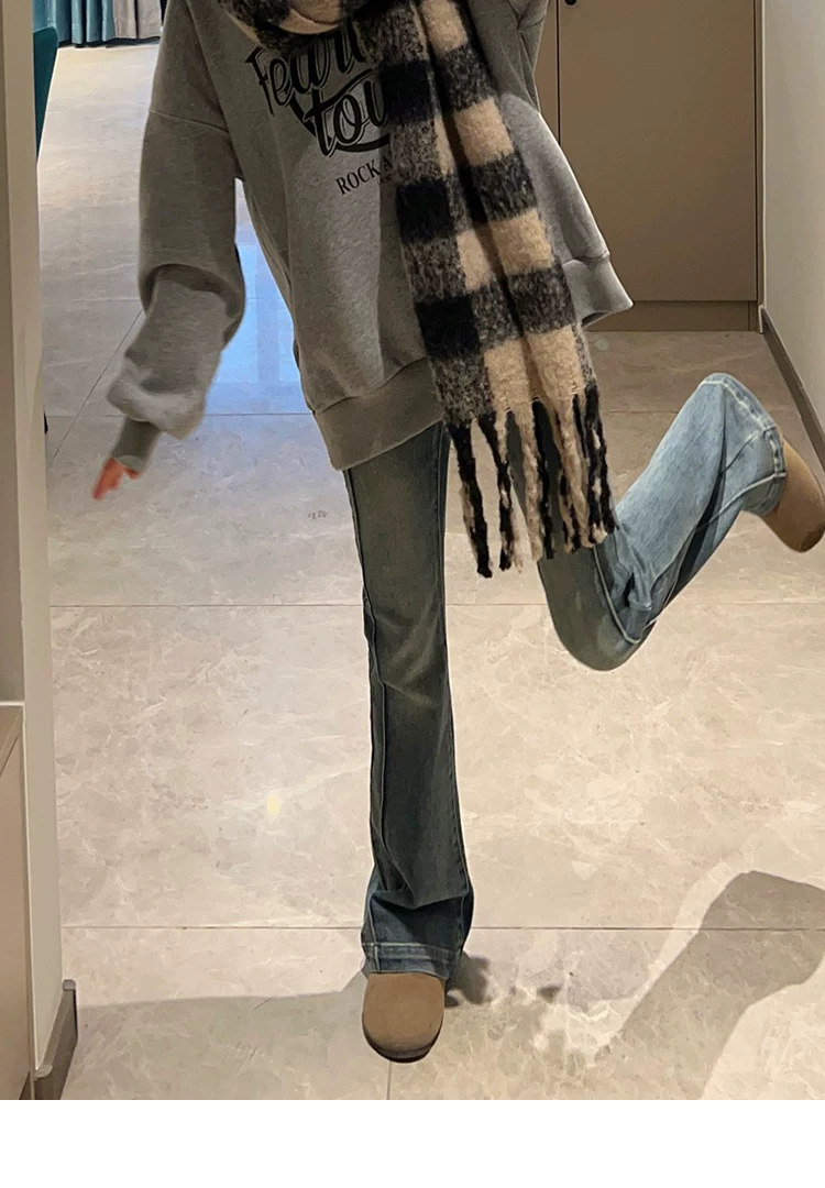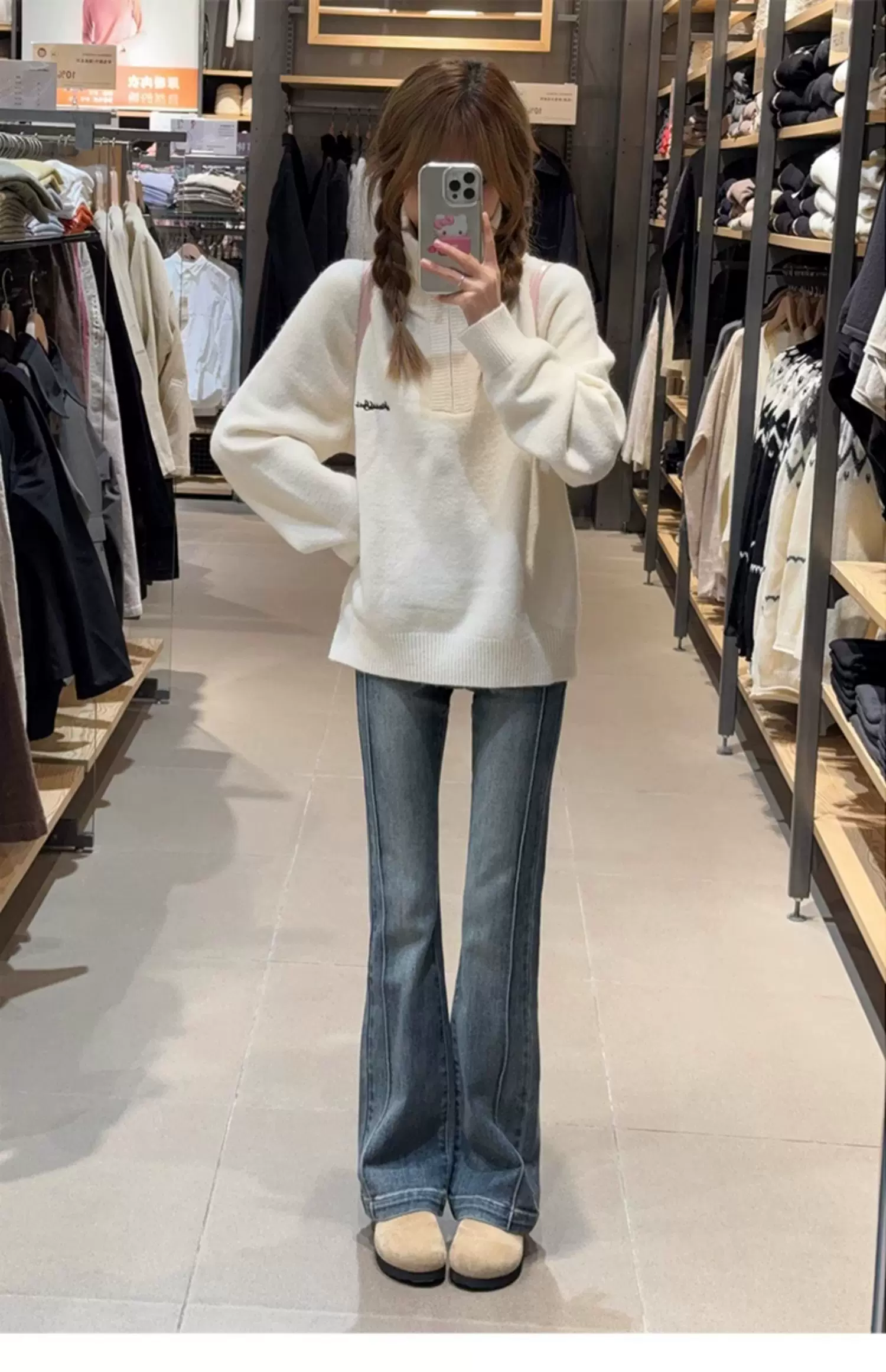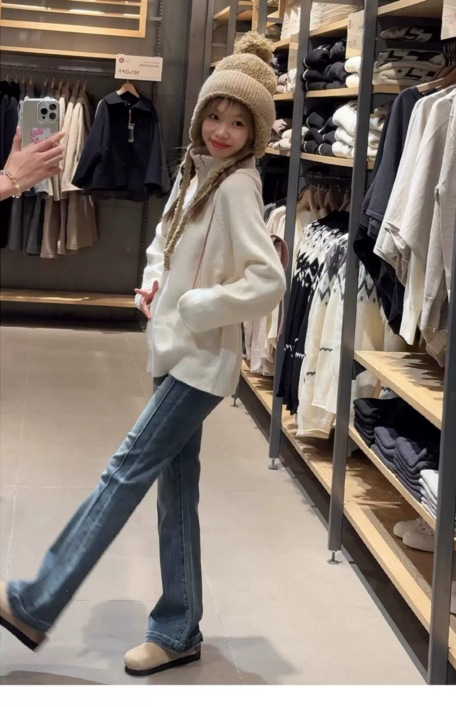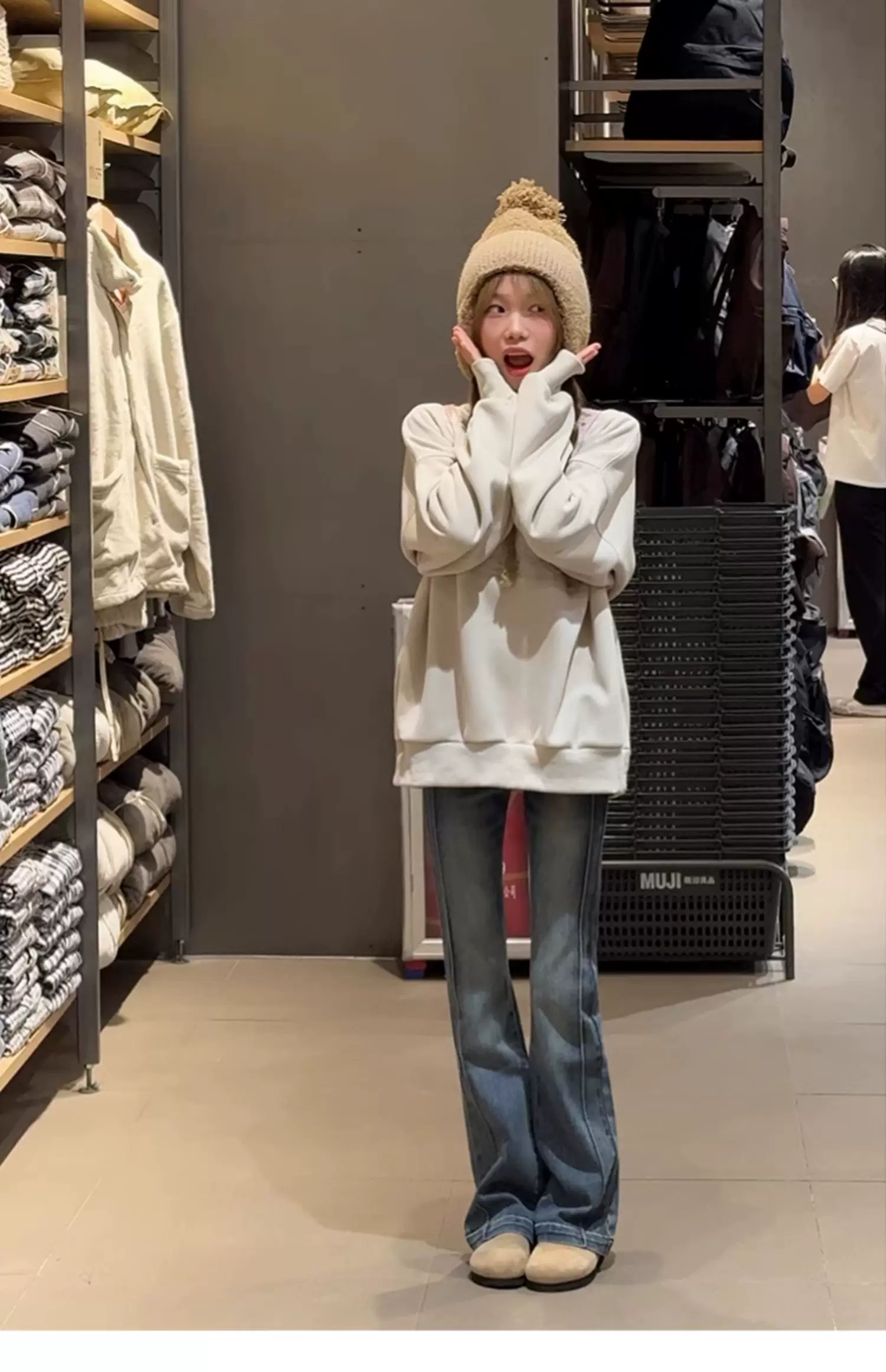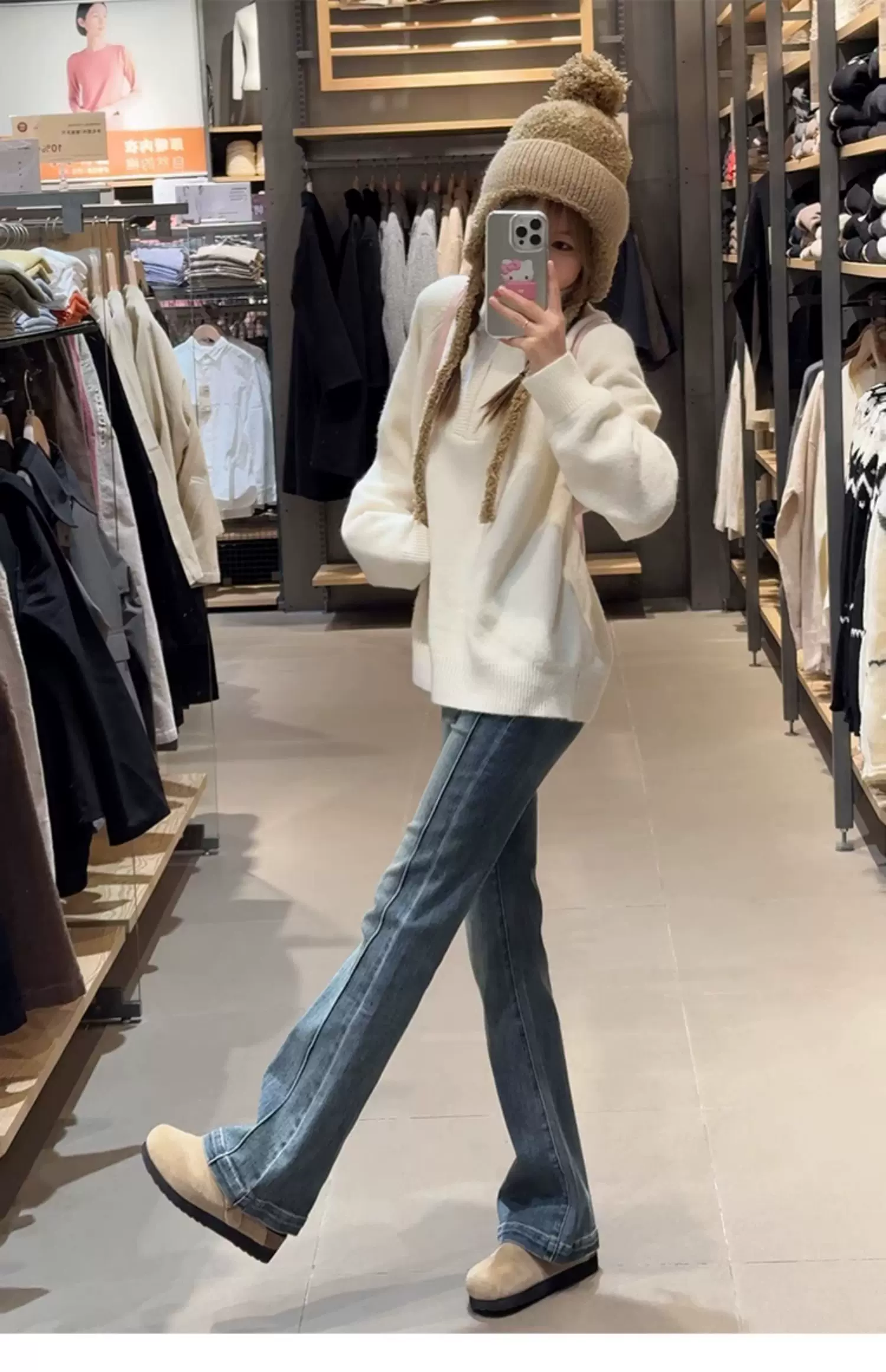 - Quần jean dáng quả lê dành cho nữ, cỡ lớn mùa đông, lót lông cừu, dày dặn, cạp cao, co giãn, che hông, quần bootcut tôn dáng
