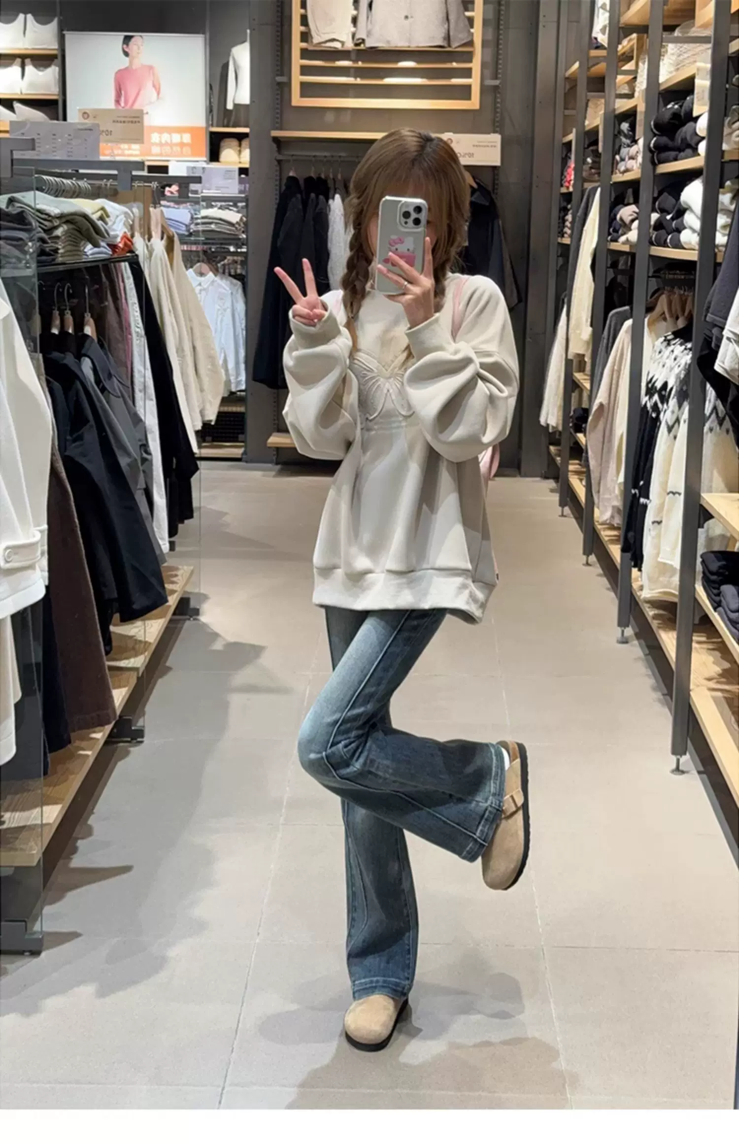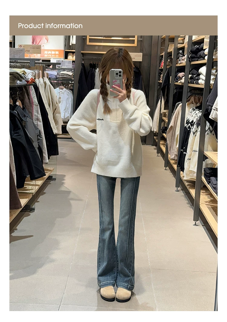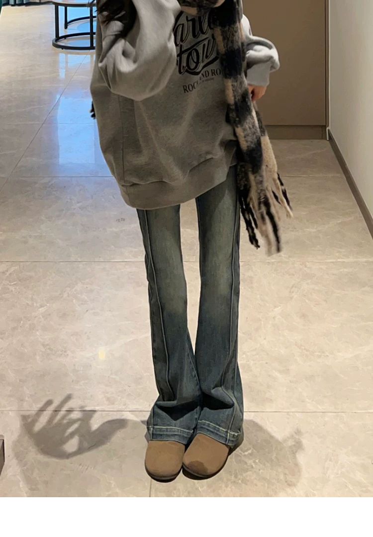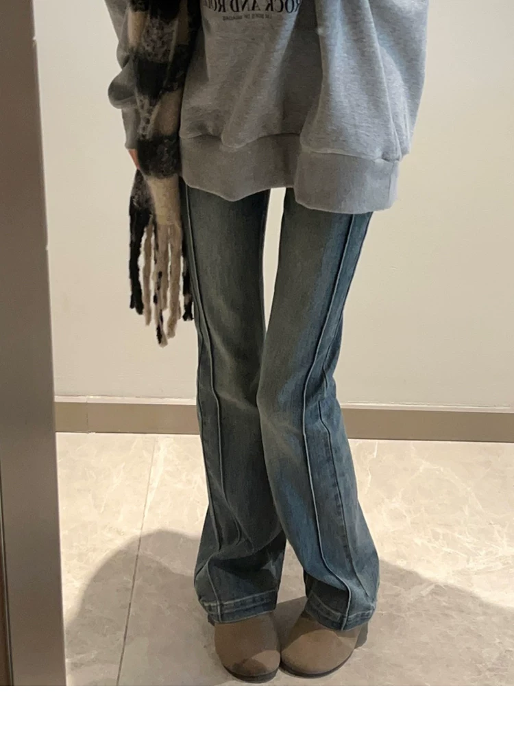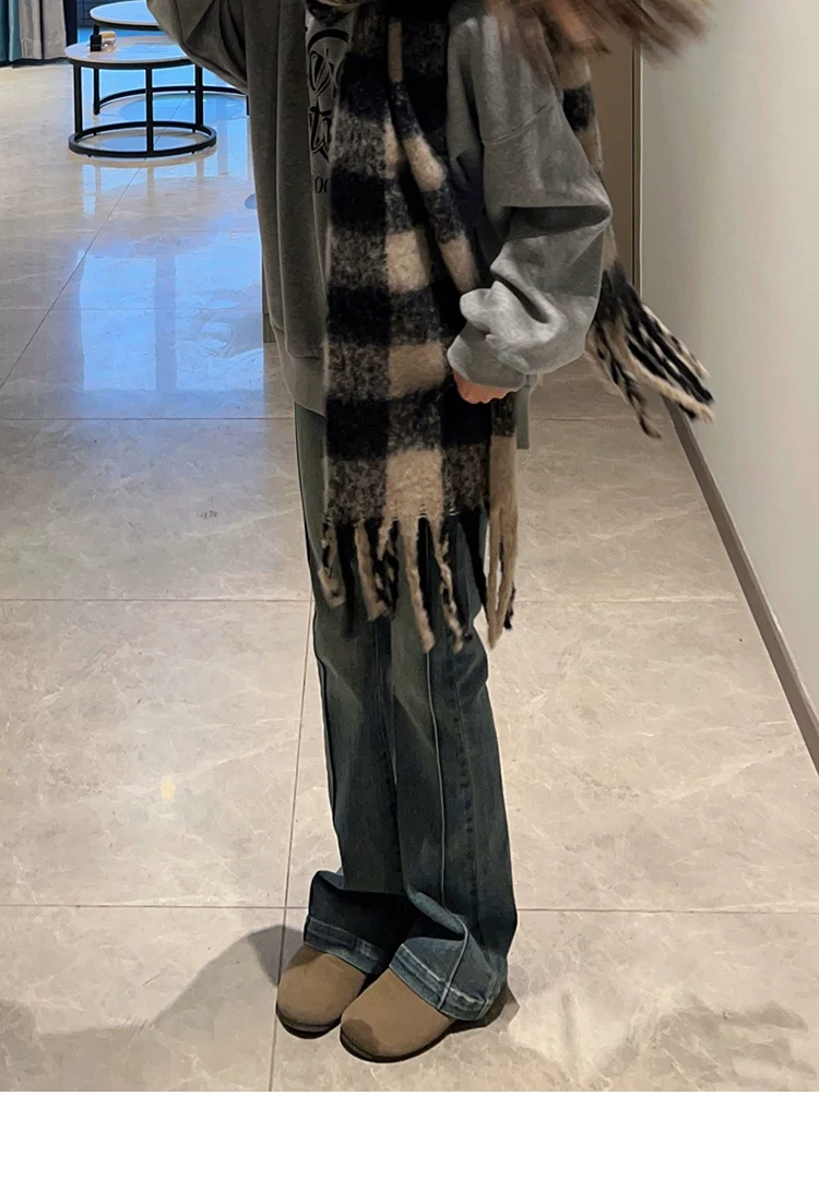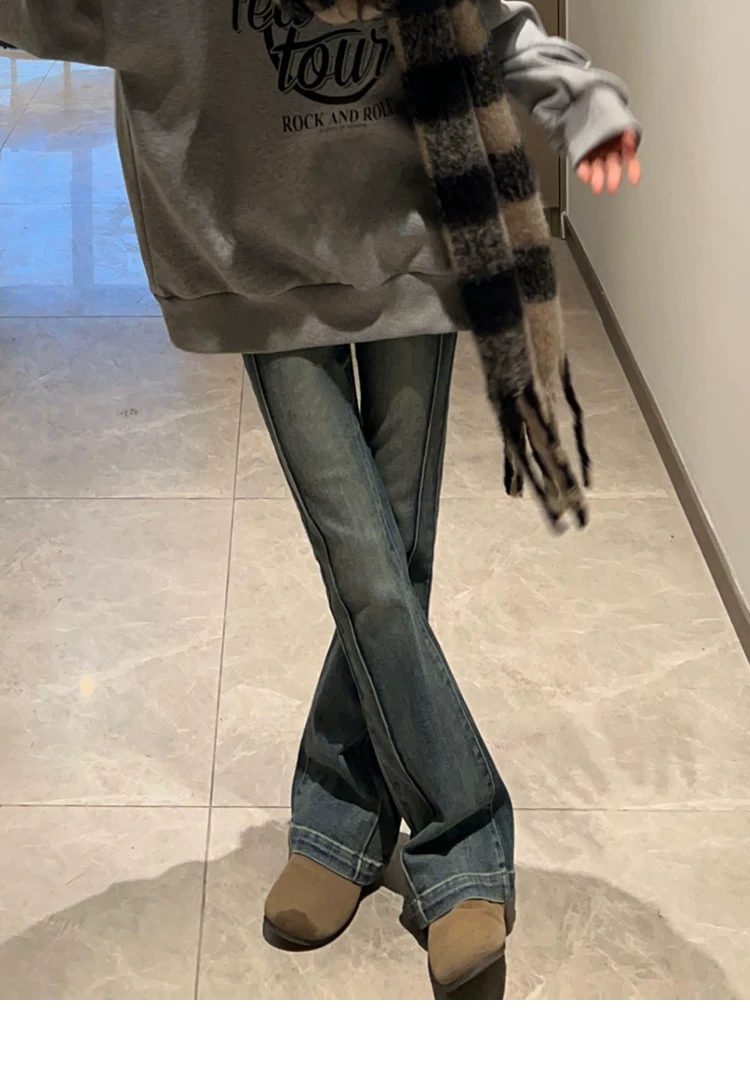 - Quần jean dáng quả lê dành cho nữ, cỡ lớn mùa đông, lót lông cừu, dày dặn, cạp cao, co giãn, che hông, quần bootcut tôn dáng