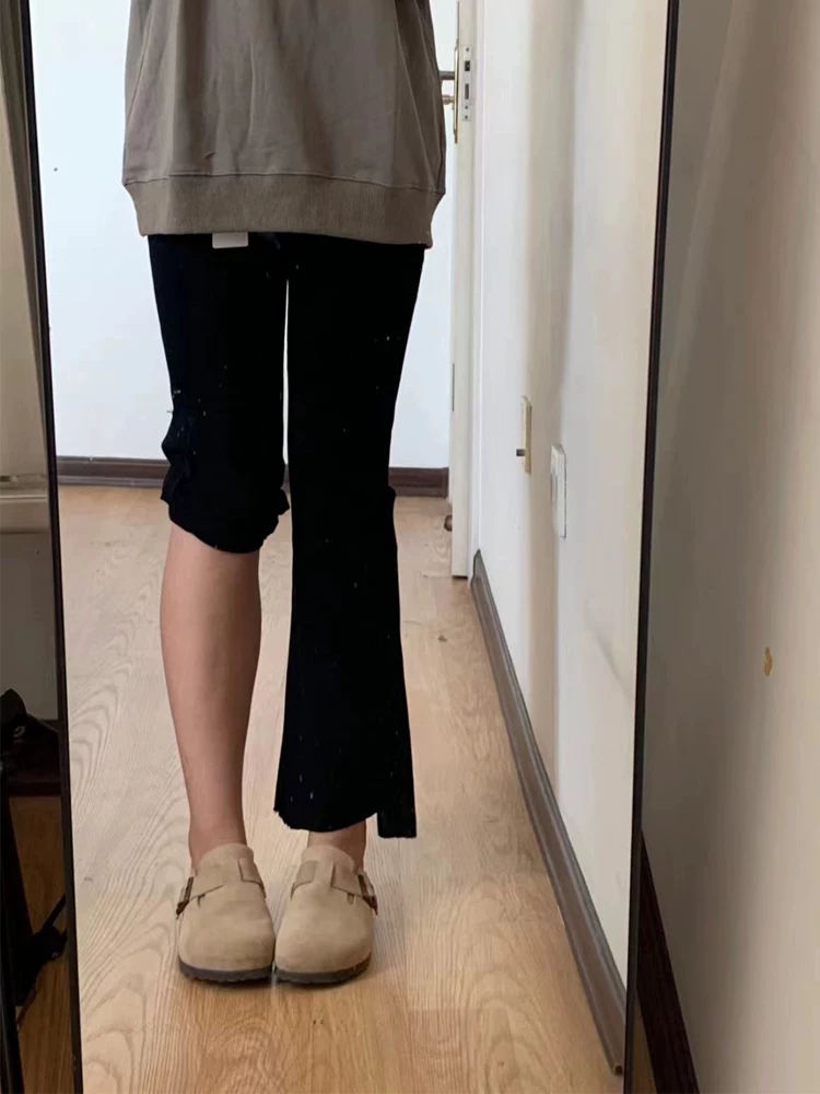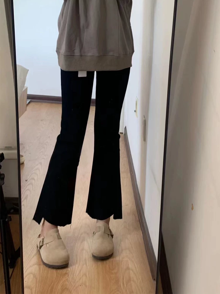 - Quần jean dáng quả lê không đều cho phụ nữ cỡ lớn, phong cách đầu thu, lưng cao, co giãn, che hông, giảm béo, quần ống loe nhỏ nhắn