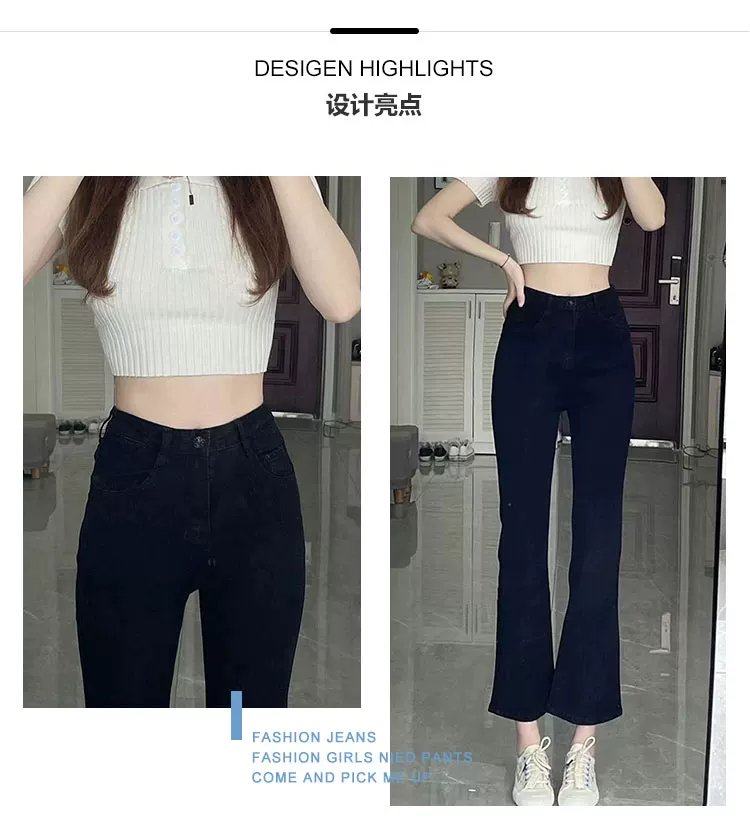 - Quần jean dáng quả lê, kiểu mới đầu xuân, cỡ lớn, cạp cao, che hông, tôn dáng, co giãn, ống thẳng chín phần, hơi loe