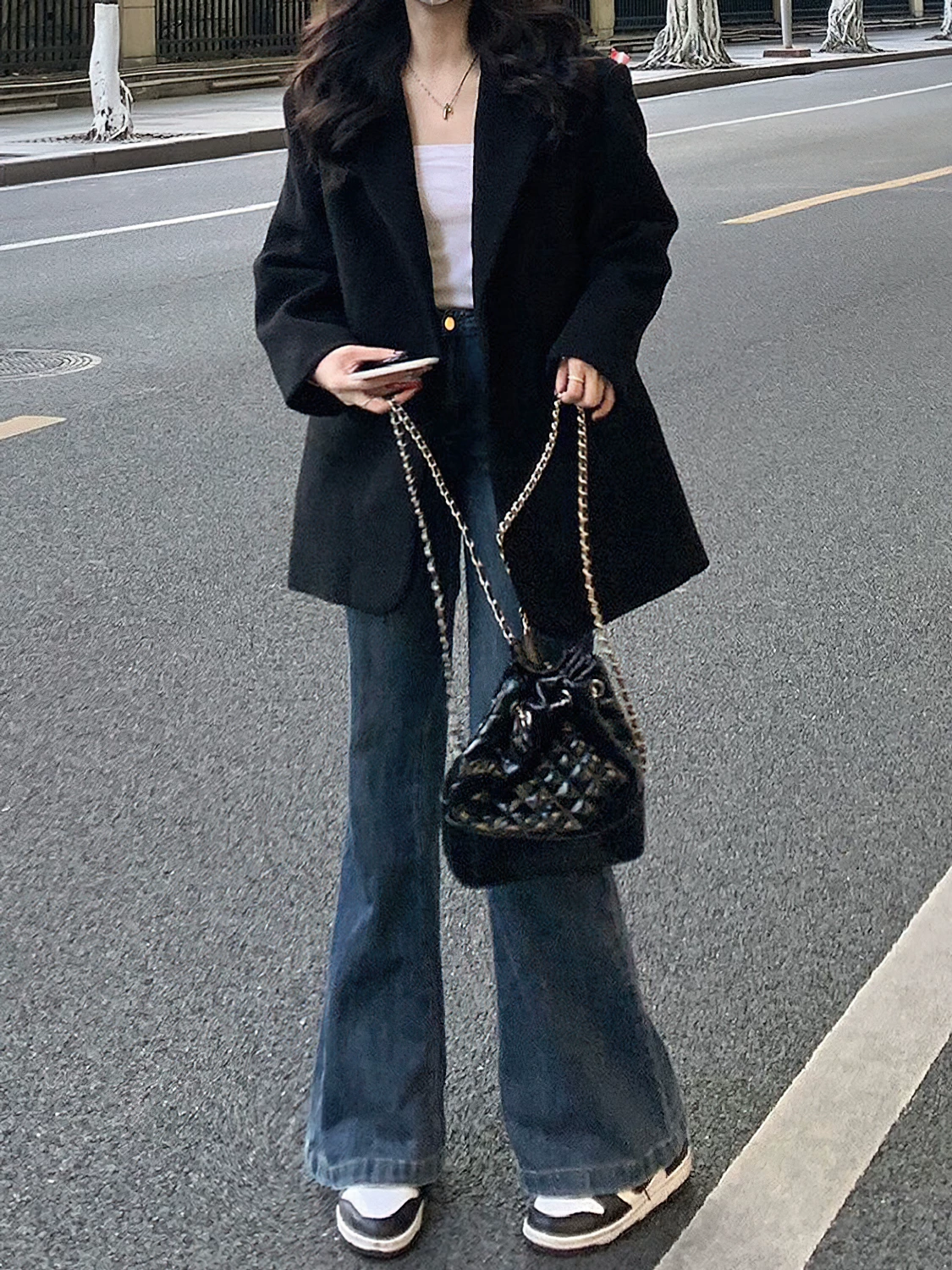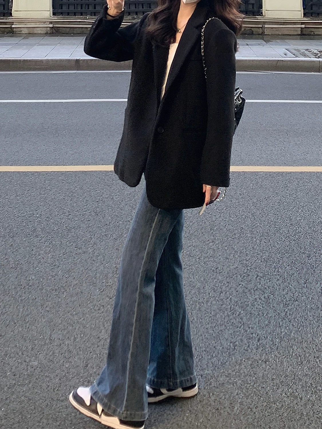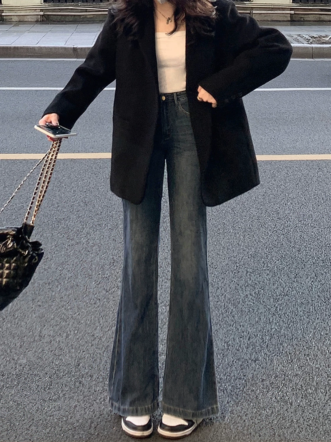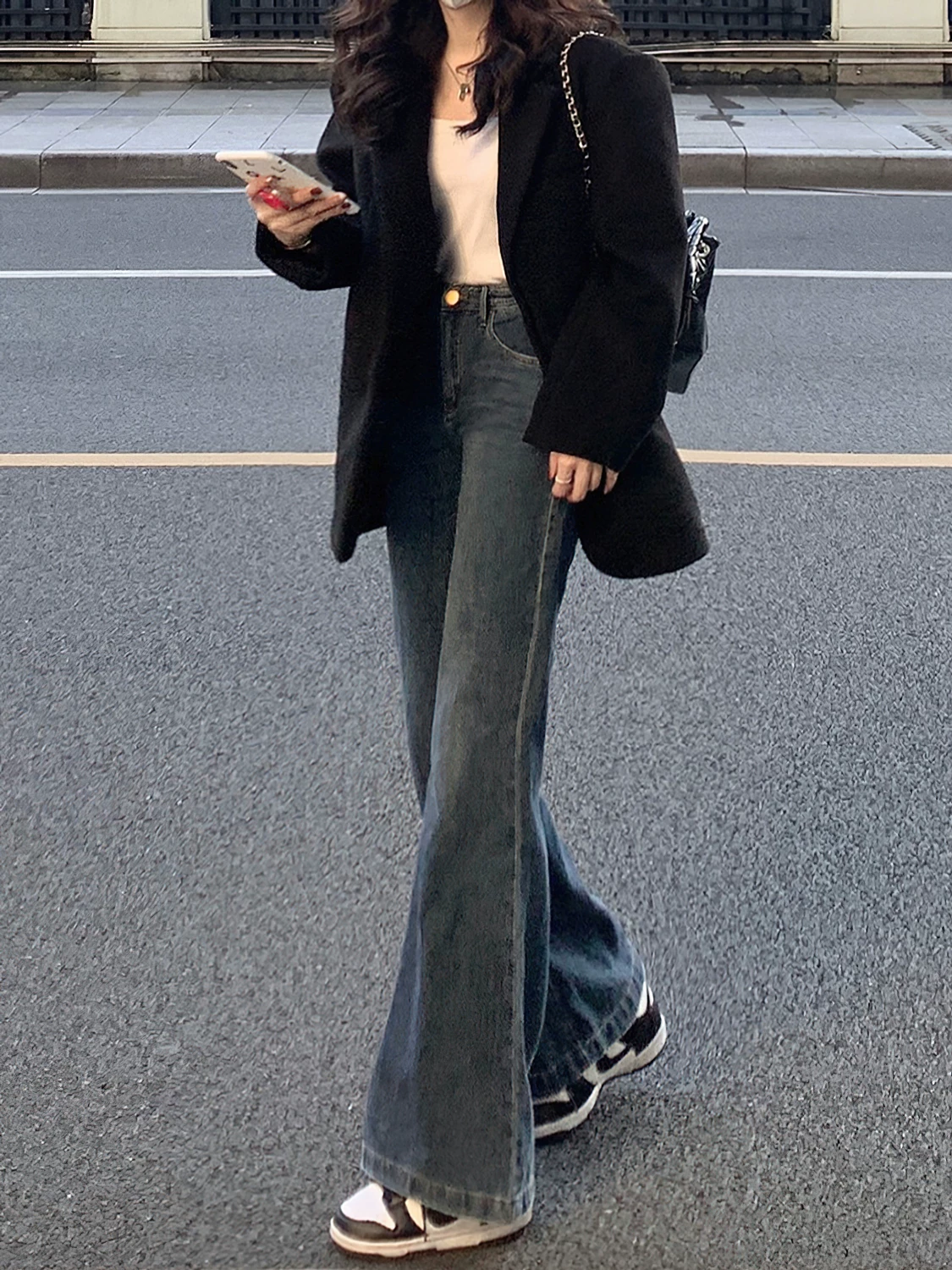 Quần jean dáng rộng màu xanh xám hình quả lê dành cho nữ đầu thu, cạp cao, dáng rộng, tôn dáng, size lớn