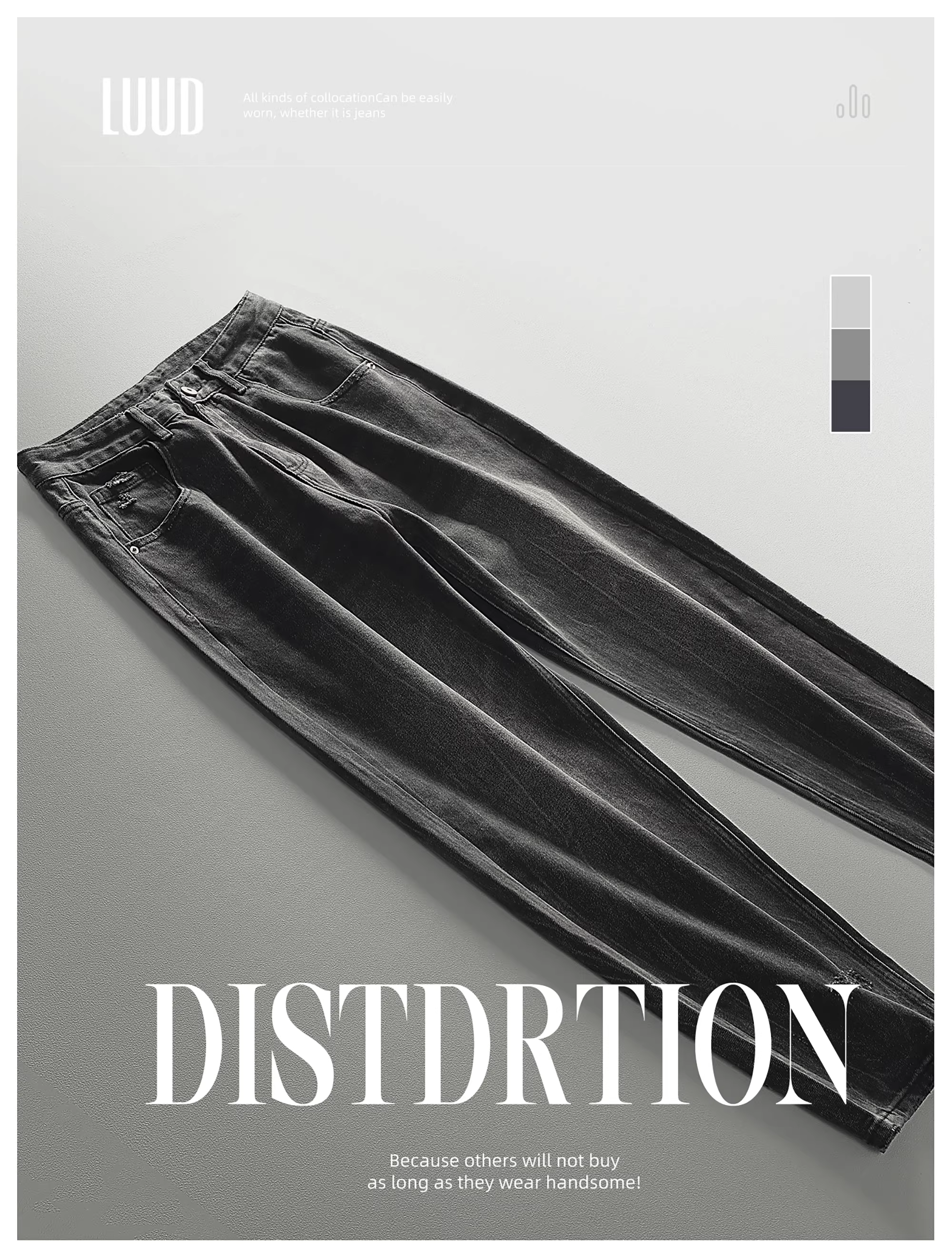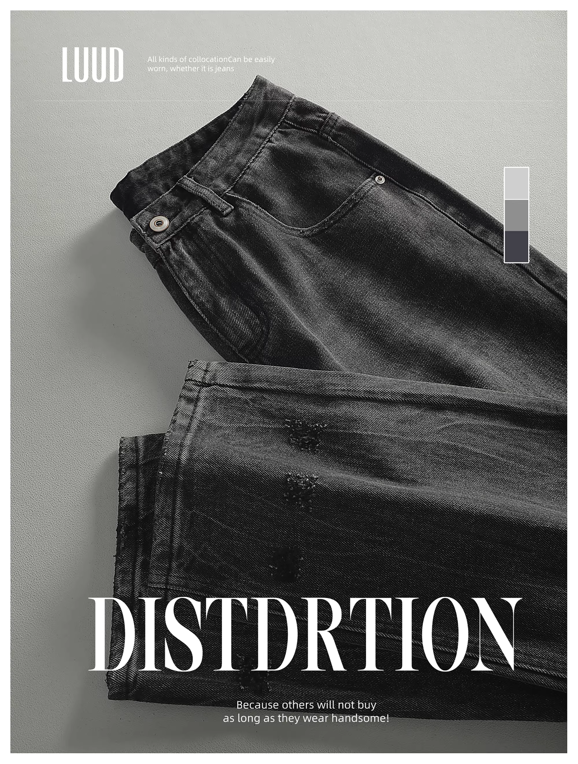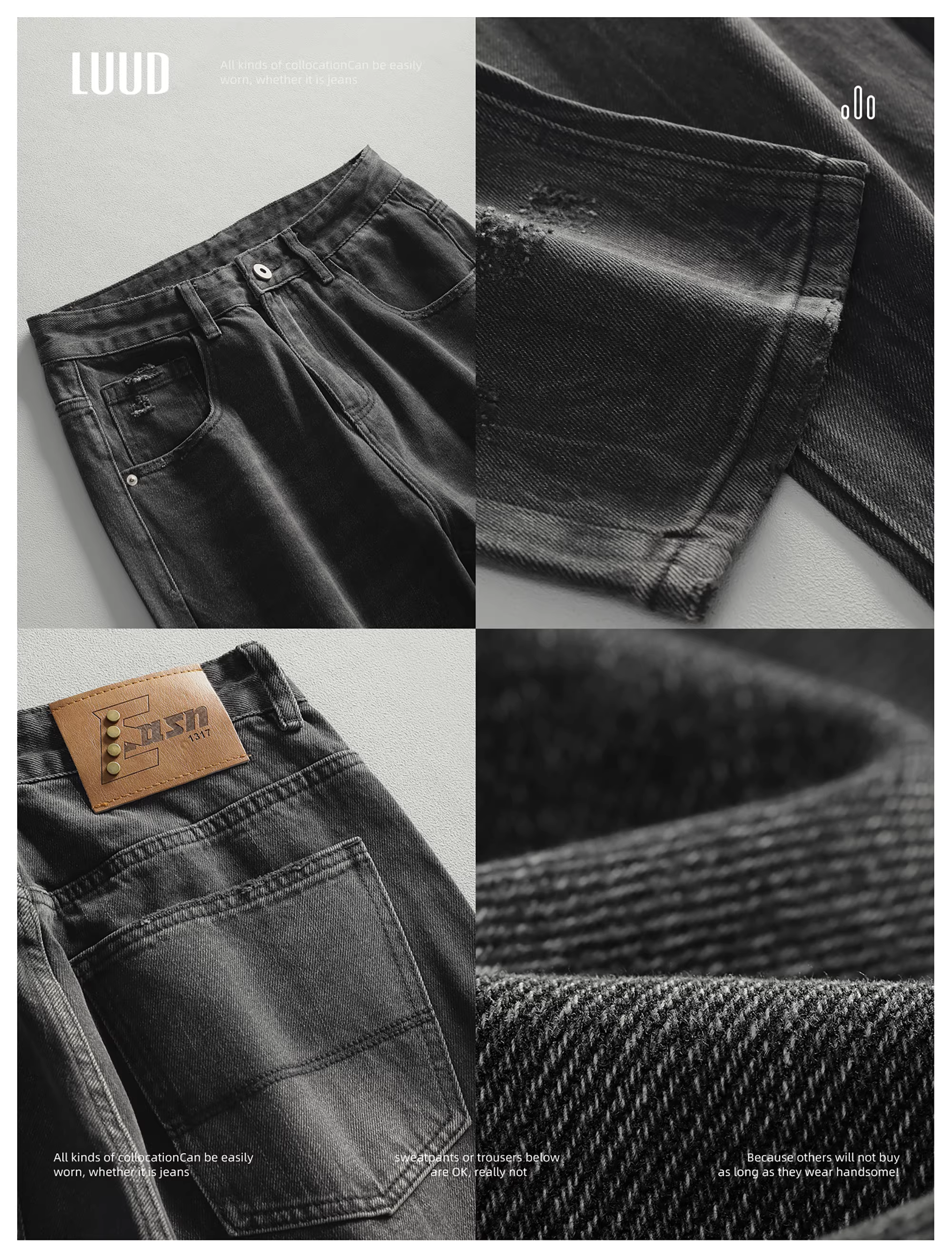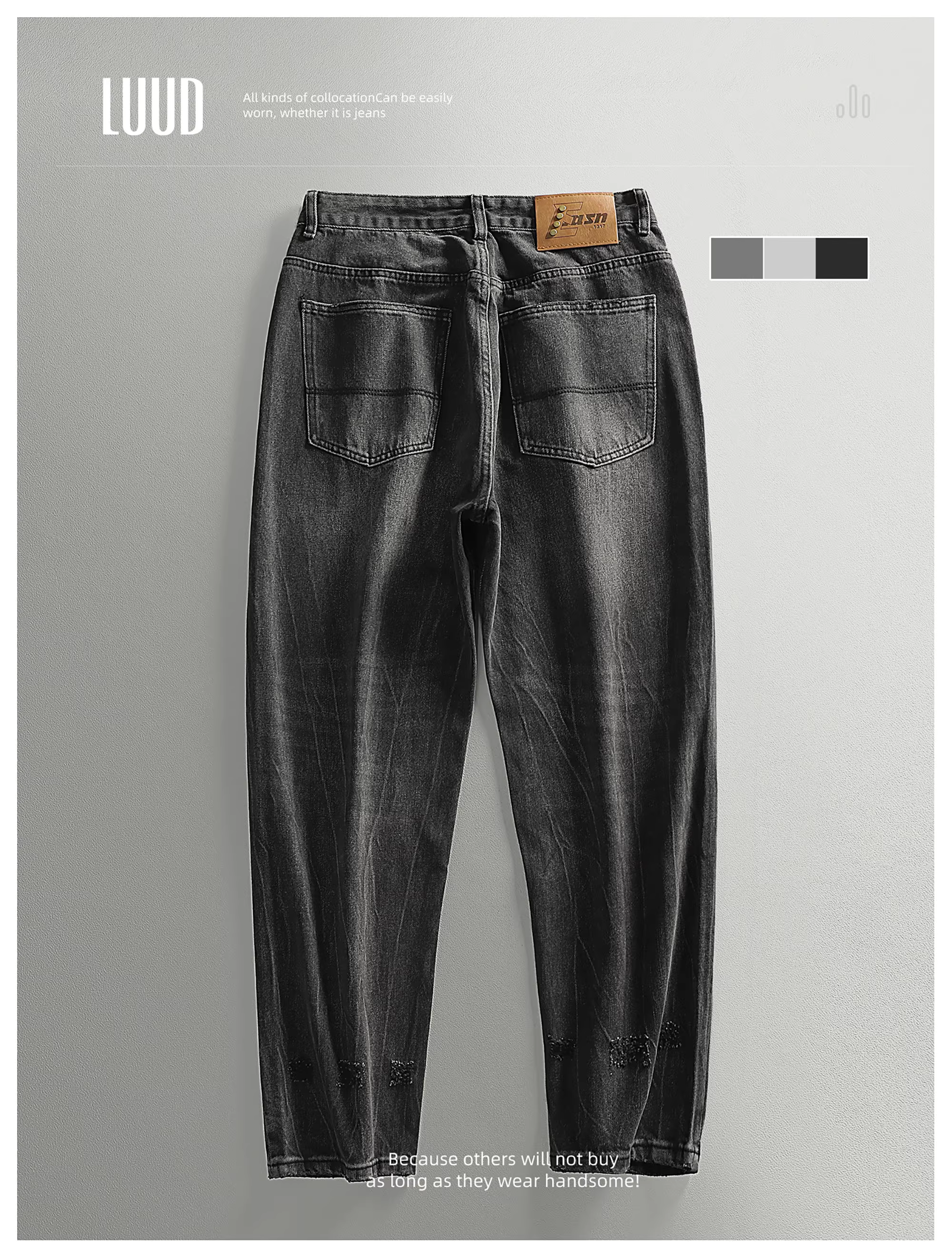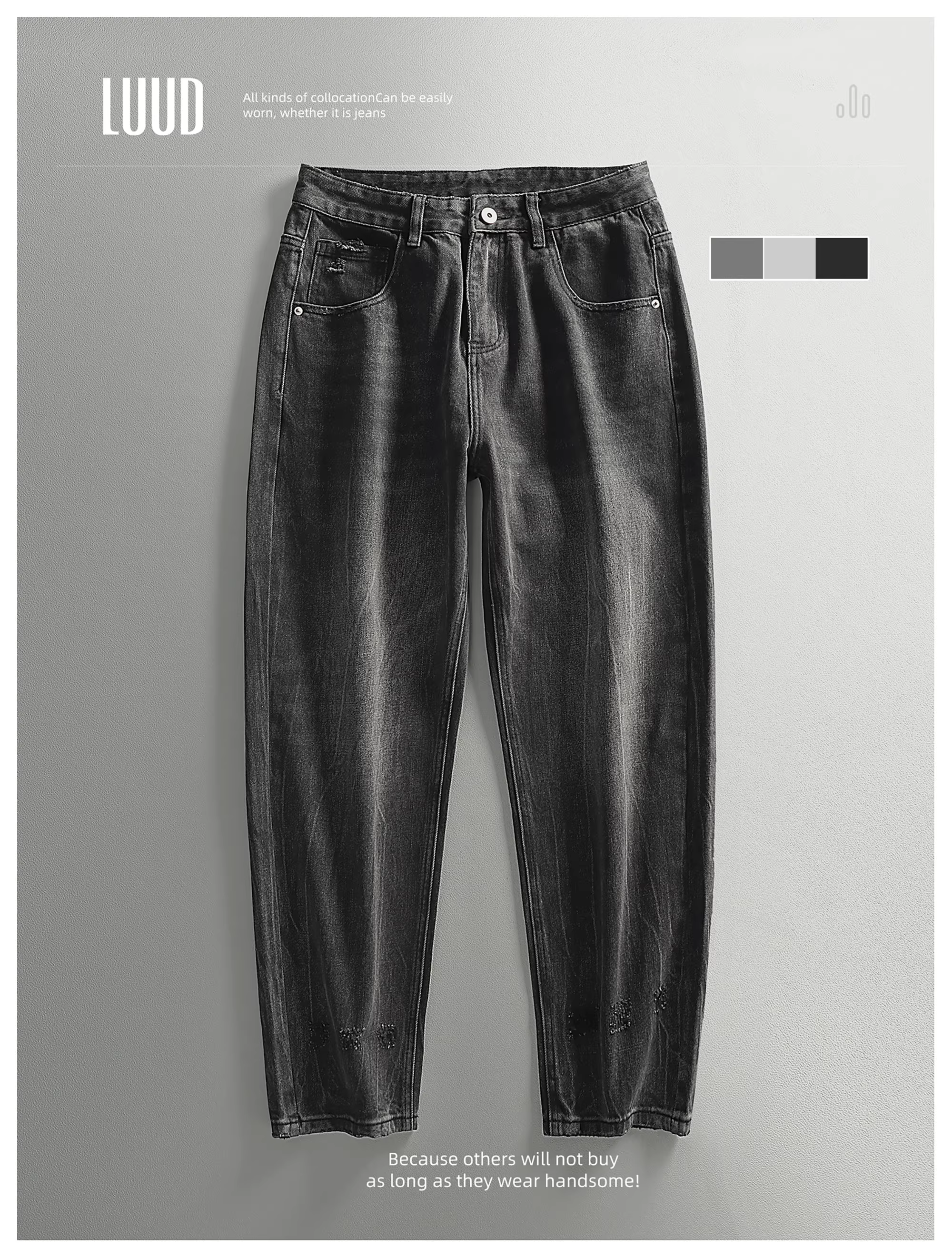 - Quần jean đen cổ điển LUUD dành cho nam, thương hiệu thời trang đường phố cao cấp của Mỹ, quần ống rộng, quần ống rộng mát mẻ
