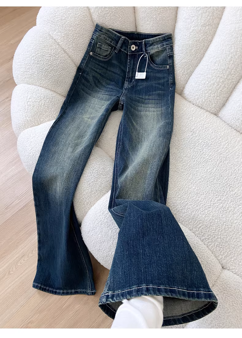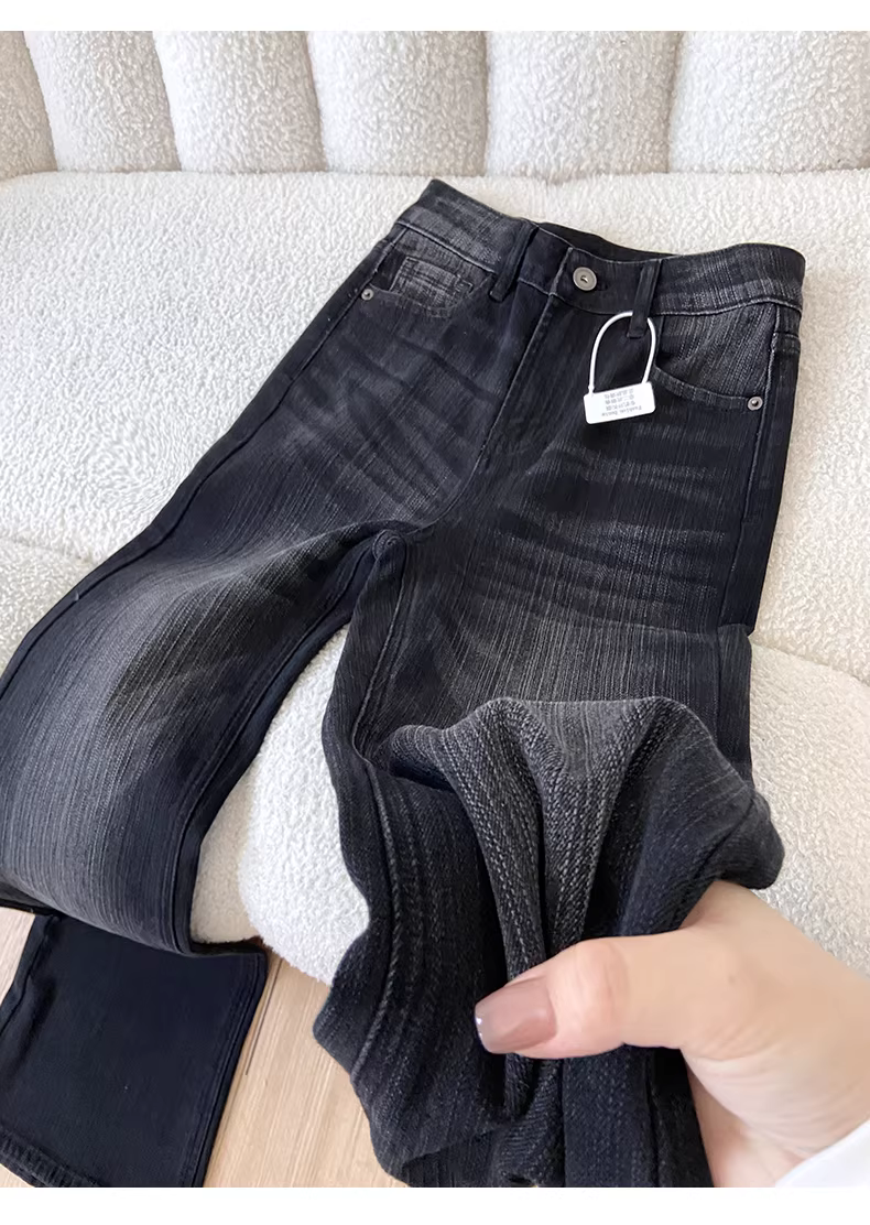 Quần jean đen dáng loe La Chapelle dành cho nữ, mẫu mới thu đông 2025, kiểu dáng ôm dáng, ống chuông, size nhỏ.