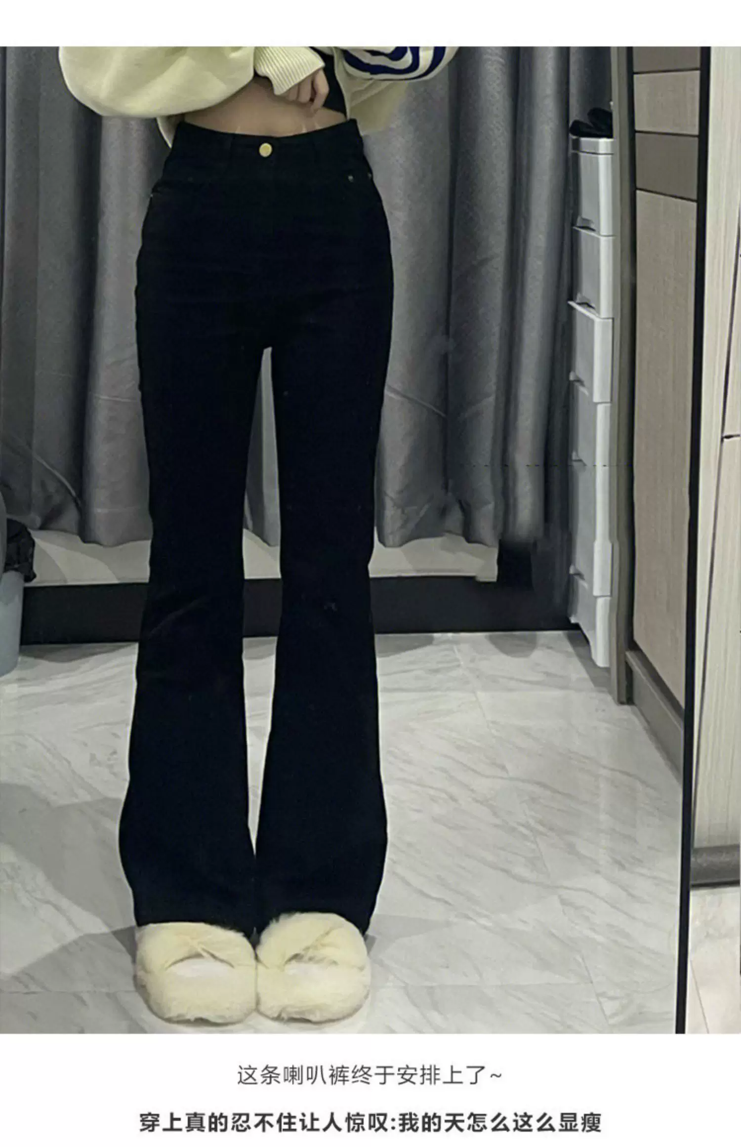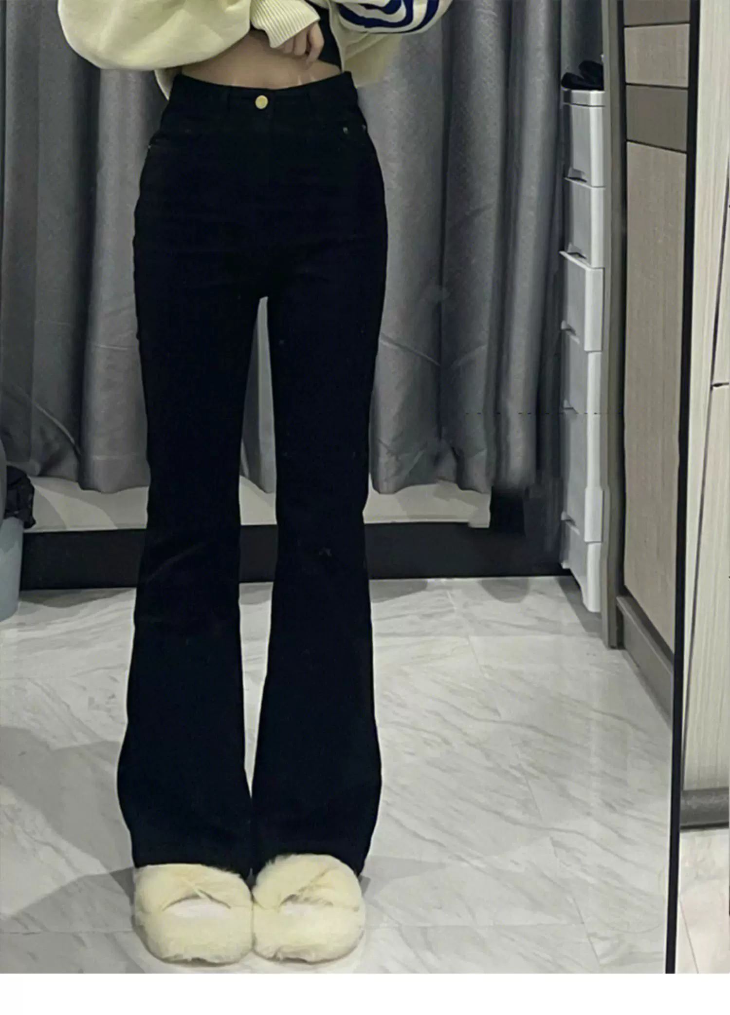 - Quần jean đen ống loe dành cho nữ, phong cách đầu thu, cỡ lớn, lưng cao, tôn dáng, co giãn, dáng quả lê, quần ống loe.