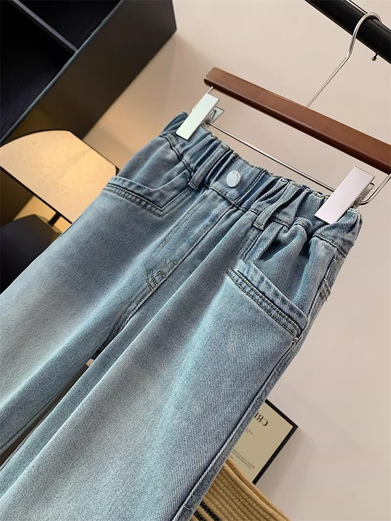 - Quần jean đơn giản, đa năng, có túi, kiểu dáng mùa xuân/hè 2025, quần ống rộng thẳng, dành cho trẻ lớn hơn.