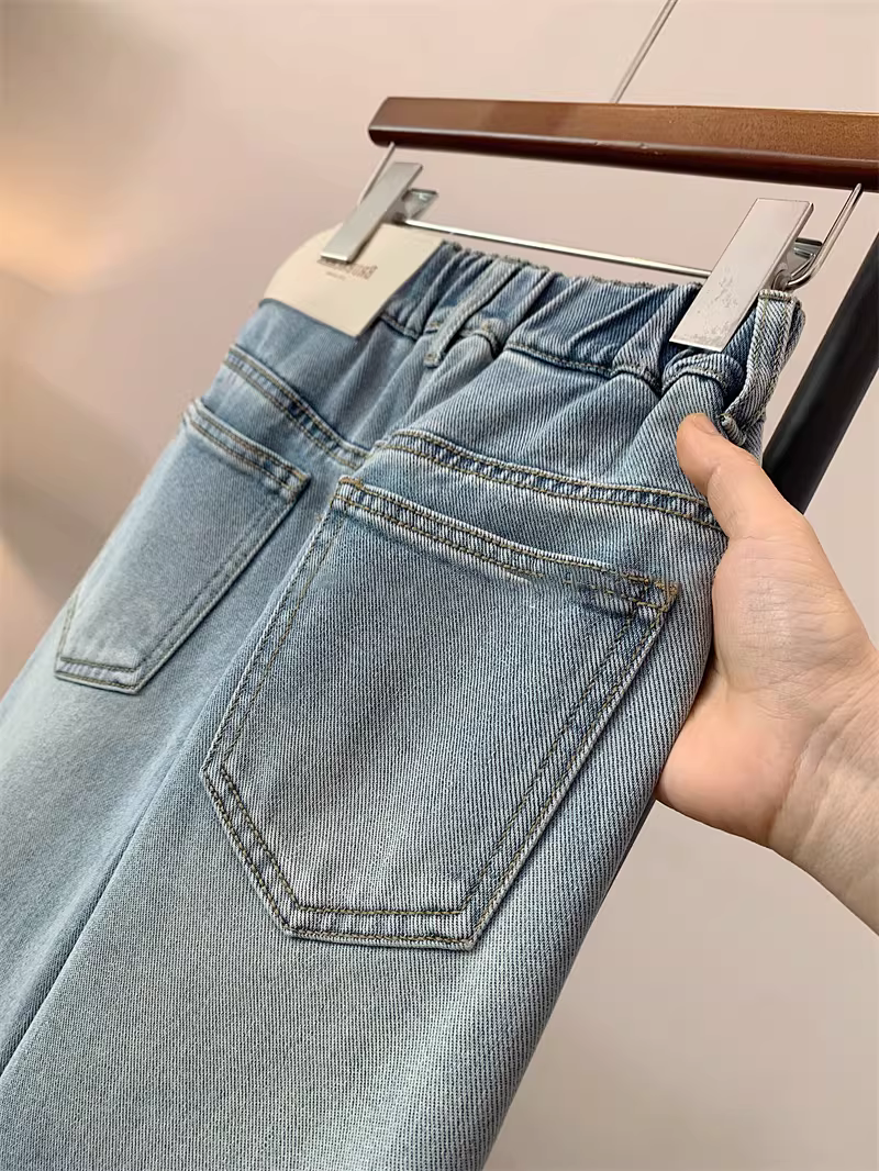 Quần jean đơn giản, đa năng, có túi, kiểu dáng mùa xuân/hè 2025, quần ống rộng thẳng, dành cho trẻ lớn hơn.