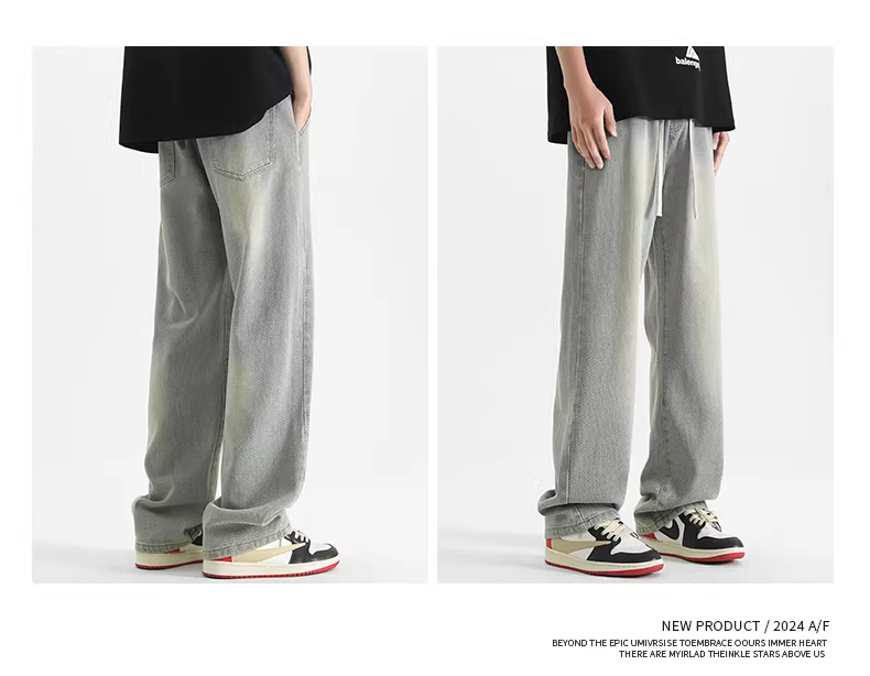 - Quần jean họa tiết bầu trời đầy sao kiểu Mỹ dành cho nam, mùa hè mỏng, hợp thời trang, dáng rộng, màu vàng retro nhuộm bùn, quần dài thẳng, dáng rộng, phong cách giản dị