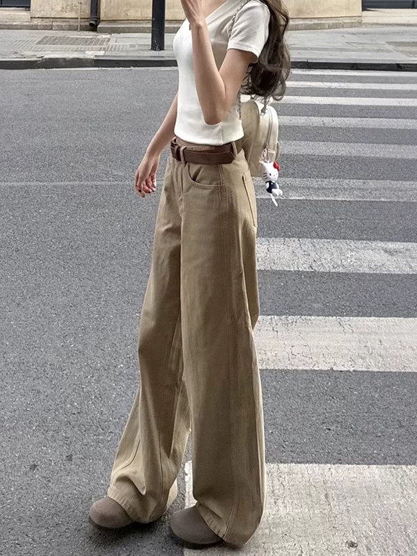 Quần jean kaki ống thẳng cho nữ, kiểu dáng mùa thu mới, cỡ lớn, lưng cao, che hông, giảm béo, dáng quả lê, quần ống rộng