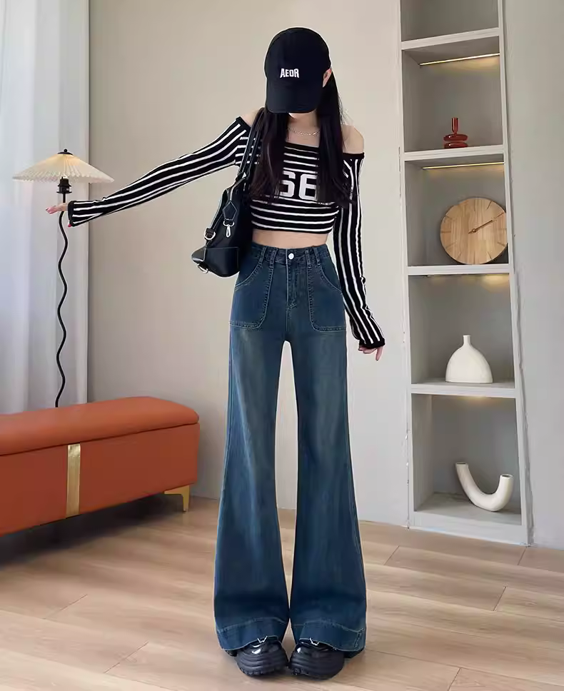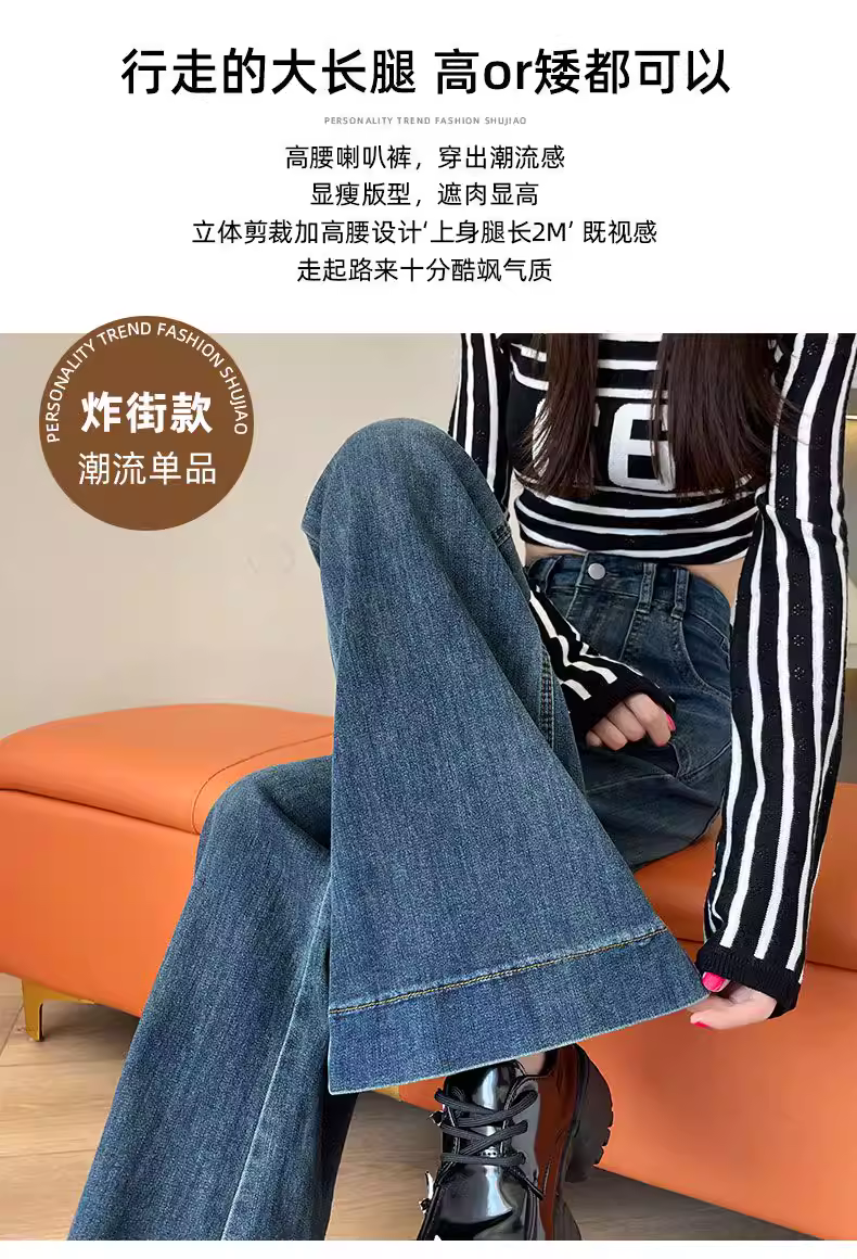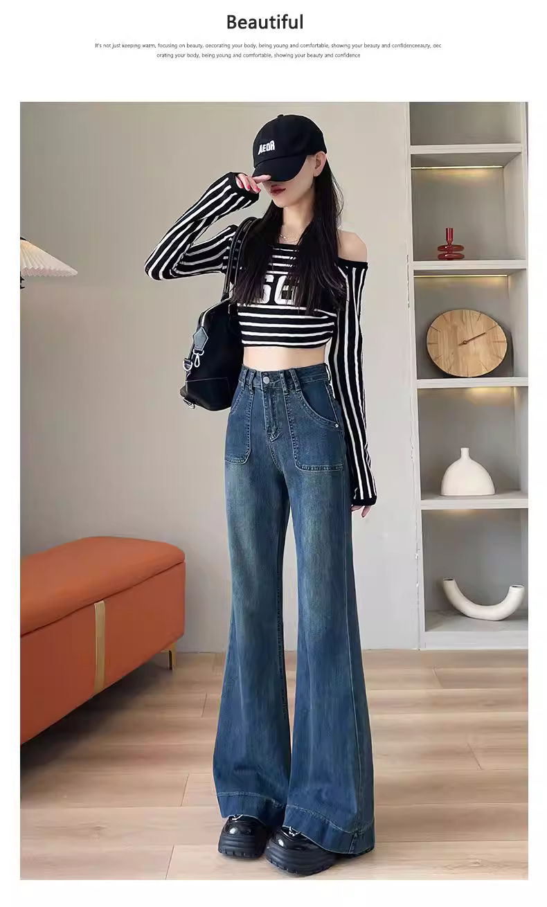 - Quần jean La Chapelle lót lông cừu, không bó sát, hơi loe dành cho nữ, quần ống loe cạp cao tôn dáng mùa thu đông 2025.