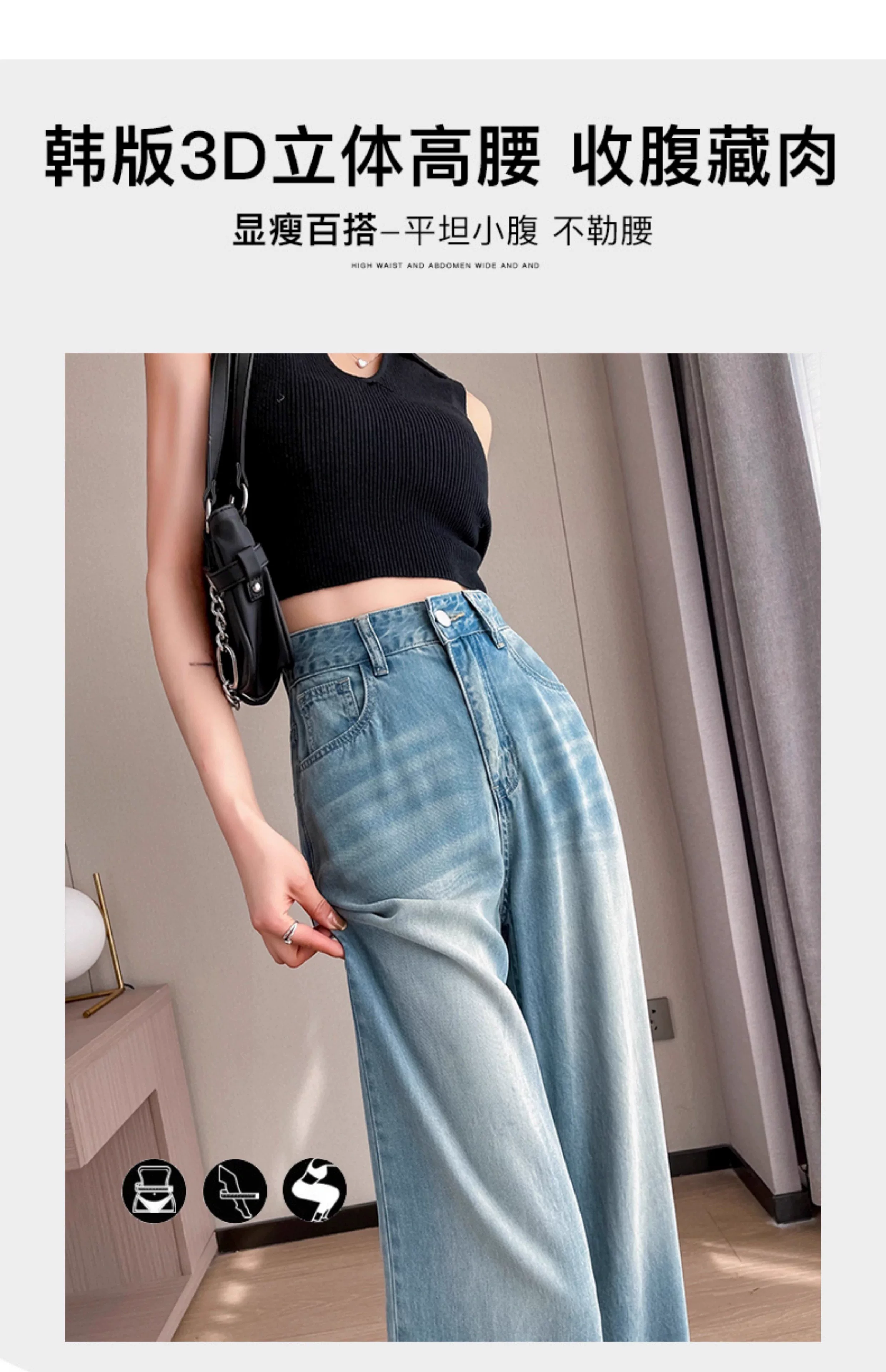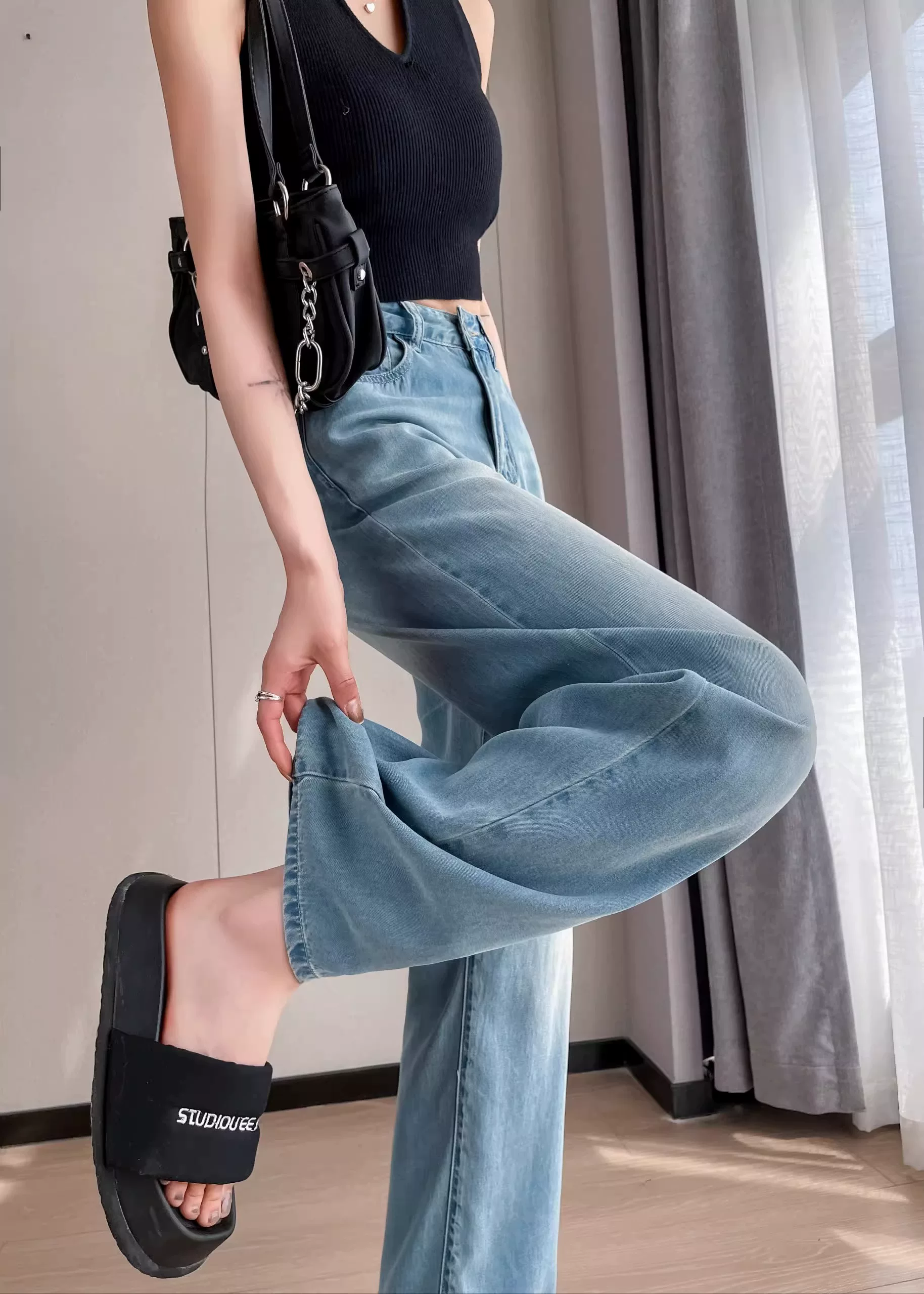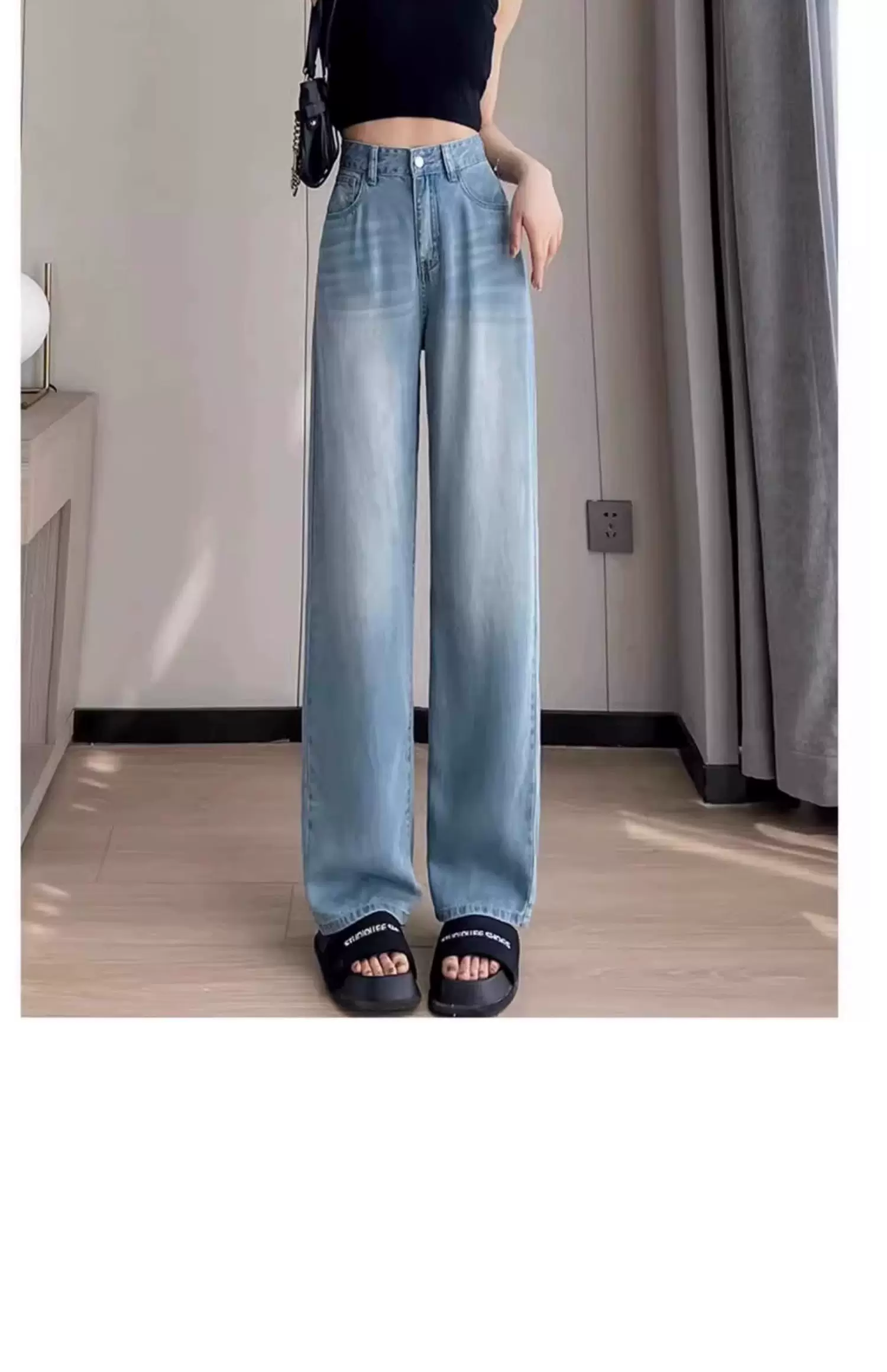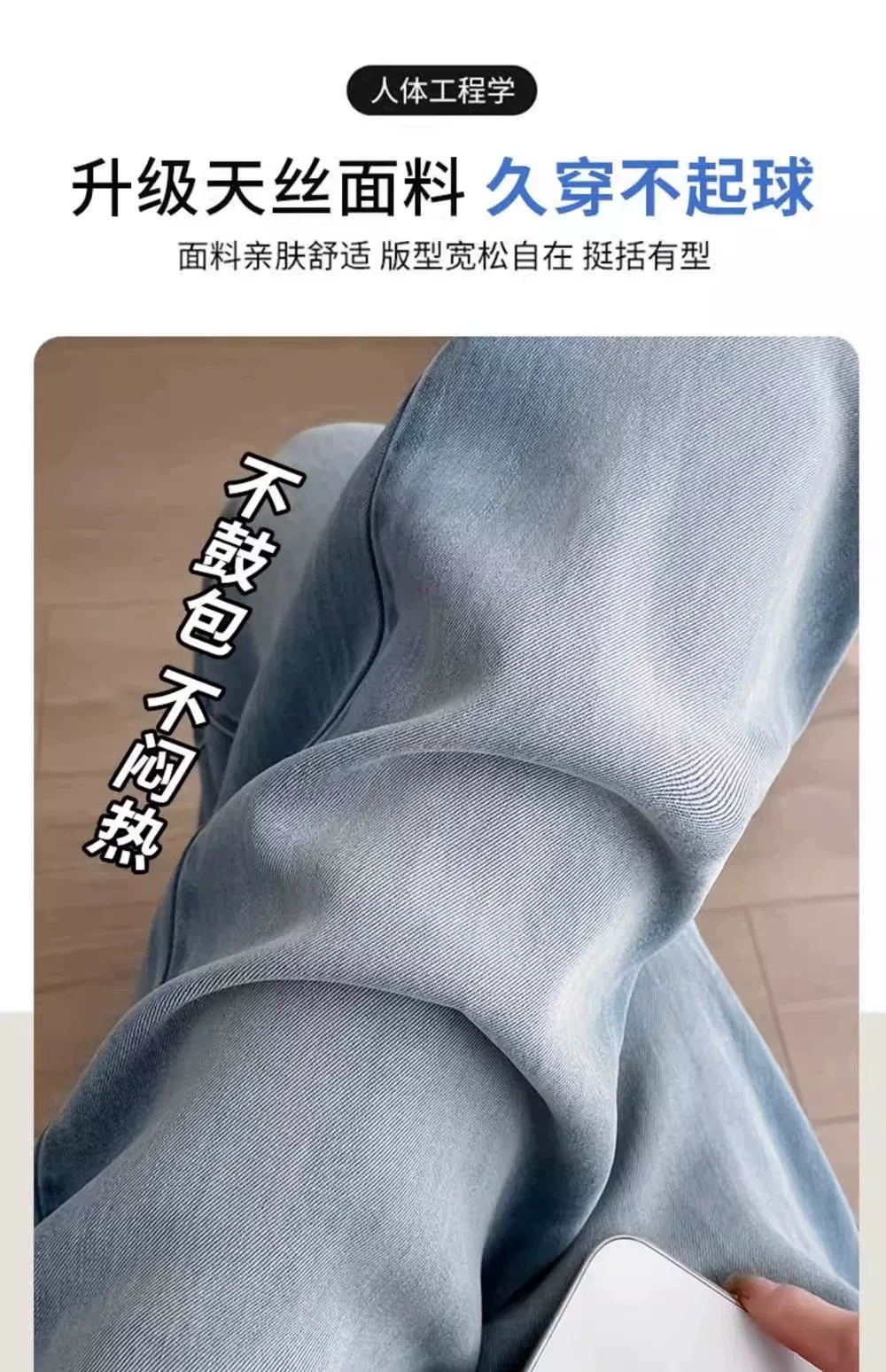 - Quần jean lụa băng màu sáng hình quả lê dành cho nữ, kiểu dáng mỏng mùa hè, cỡ lớn, lưng cao, dáng rộng, giảm béo, quần ống rộng Tencel