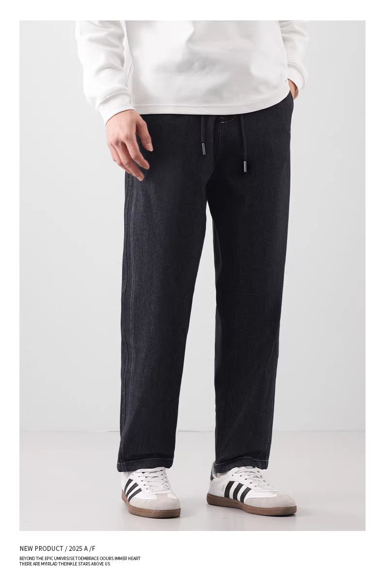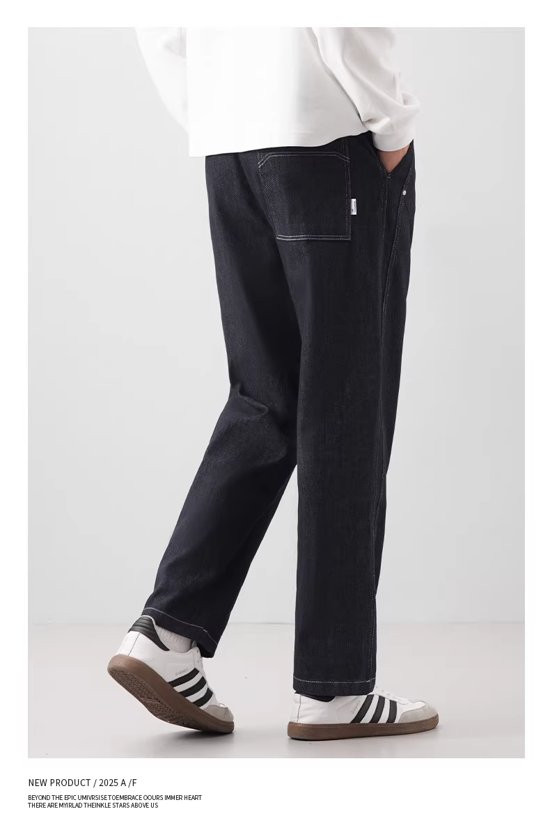 - Quần jean màu nguyên bản hạng nặng OMZM dành cho nam, quần ống rộng dáng rộng theo phong cách cổ điển Mỹ mùa thu đông, quần ống rộng màu trơn thông thường