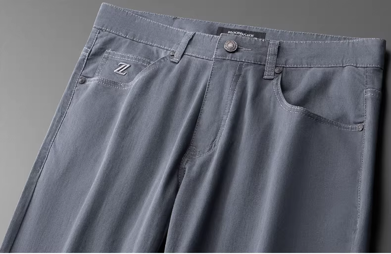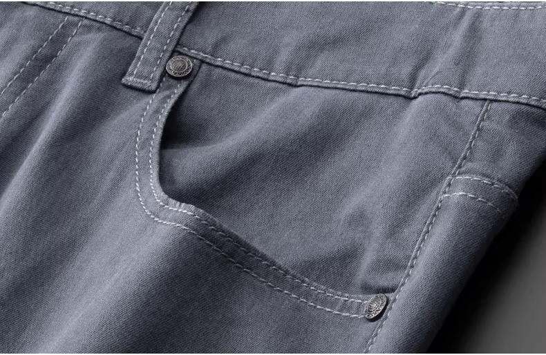 - Quần jean nam màu xám xanh nhạt, kiểu dáng thẳng, chất liệu cotton co giãn, thoáng khí, đa năng, thích hợp cho mùa hè.
