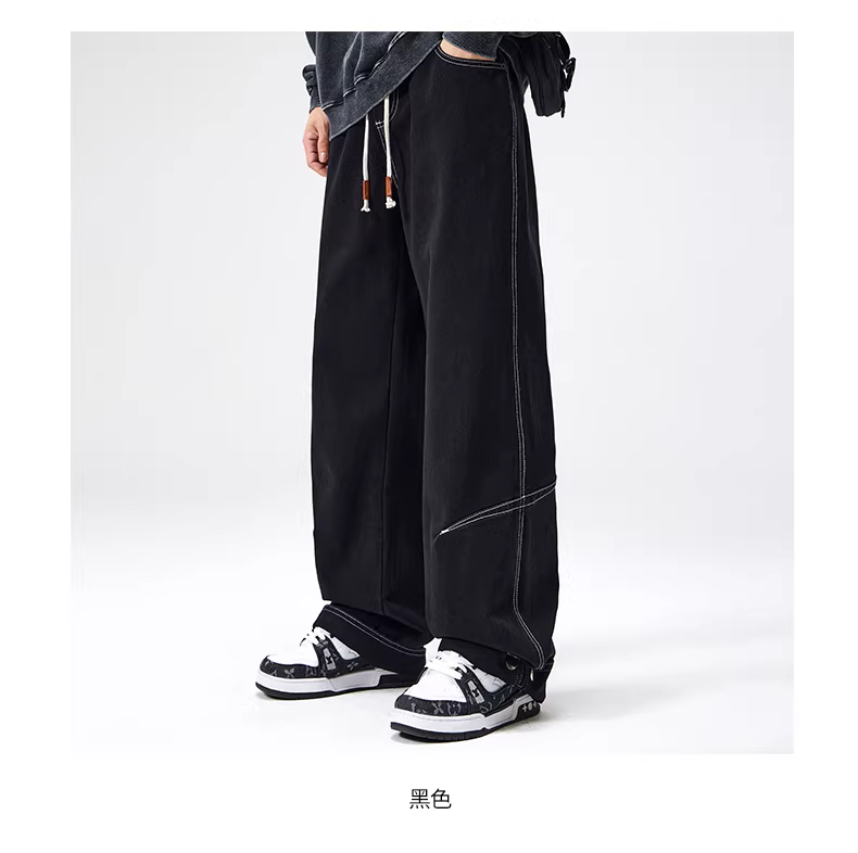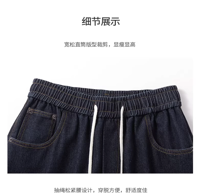 Quần jean nam màu xanh đậm, chất liệu dày dặn, kiểu dáng xu hướng đường phố mùa xuân thu, quần ống thẳng, phong cách Mỹ, quần ống rộng, dáng suông.