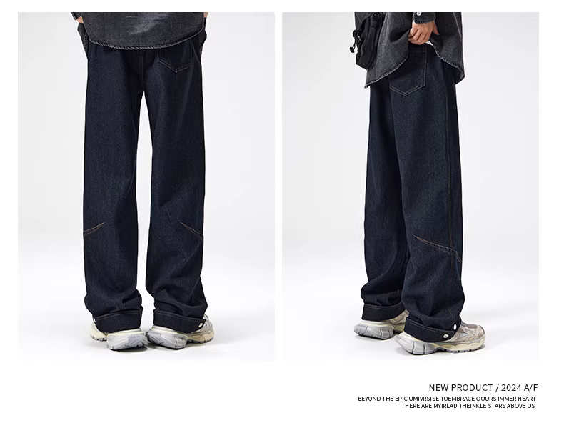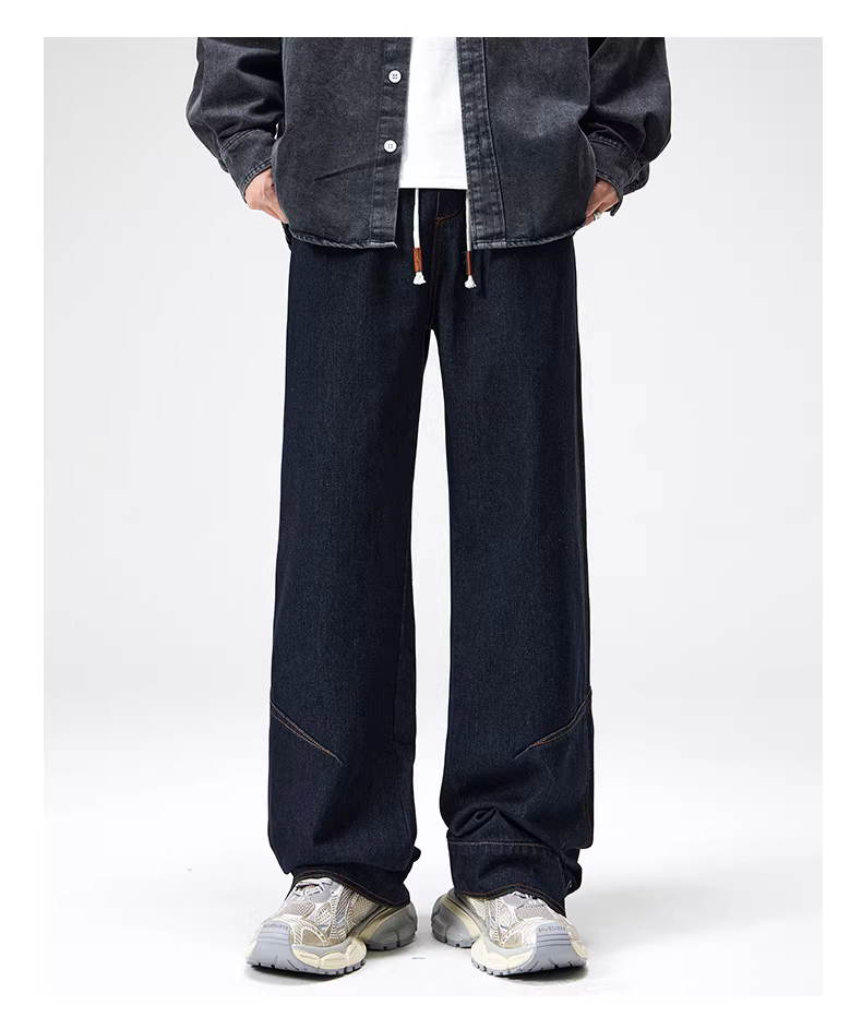 - Quần jean nam màu xanh đậm, chất liệu dày dặn, kiểu dáng xu hướng đường phố mùa xuân thu, quần ống thẳng, phong cách Mỹ, quần ống rộng, dáng suông.