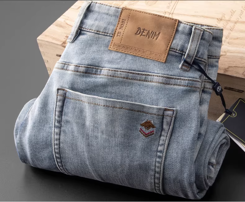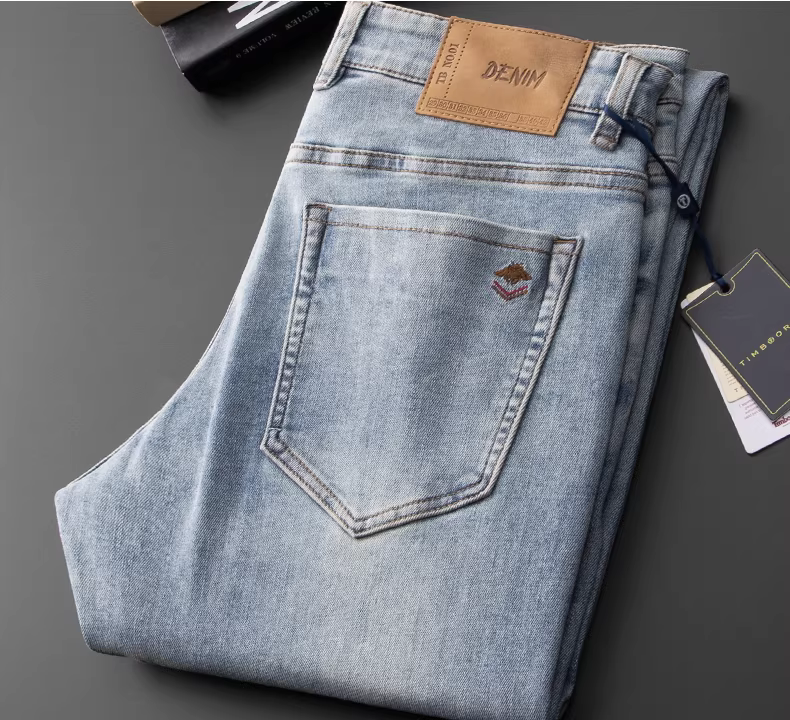 Quần jean nam thu đông mới, dáng thẳng, chất liệu cotton co giãn, quần màu xanh nhạt cao cấp, kiểu dáng lịch sự và đa năng.