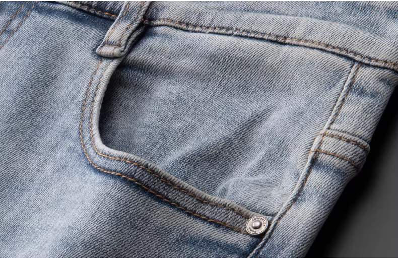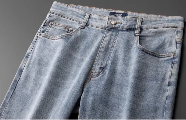 - Quần jean nam thu đông mới, dáng thẳng, chất liệu cotton co giãn, quần màu xanh nhạt cao cấp, kiểu dáng lịch sự và đa năng.