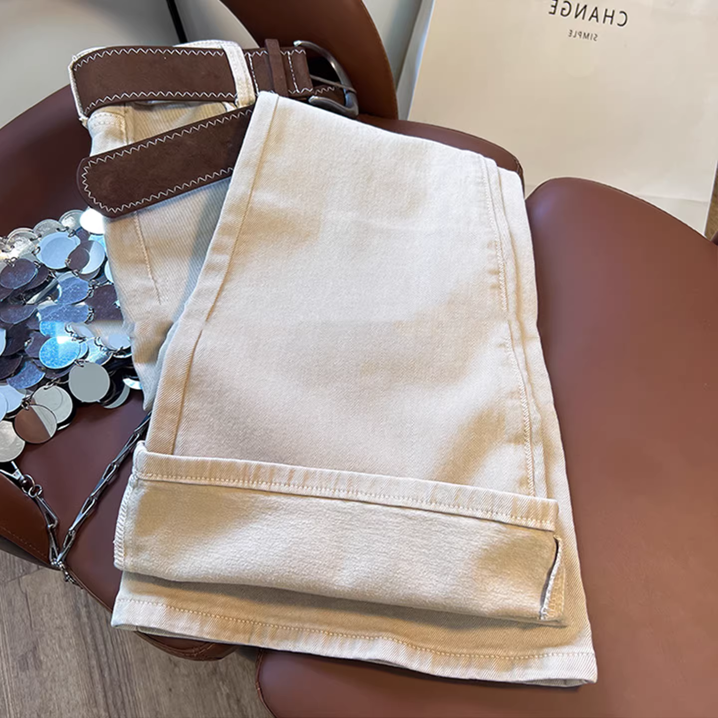 - Quần jean nữ dáng ôm, chất liệu nỉ, kiểu dáng retro cao cấp, ống loe, mùa thu đông, cạp cao, chất liệu co giãn.