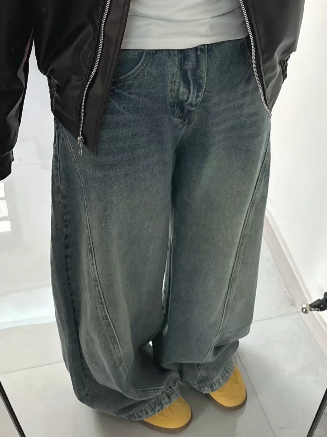 - Quần jean nữ kiểu Mỹ, vạt cong, thu đông 2025, size lớn, cạp cao, dáng rộng, tôn dáng, dành cho người có thân hình quả lê, quần ống rộng