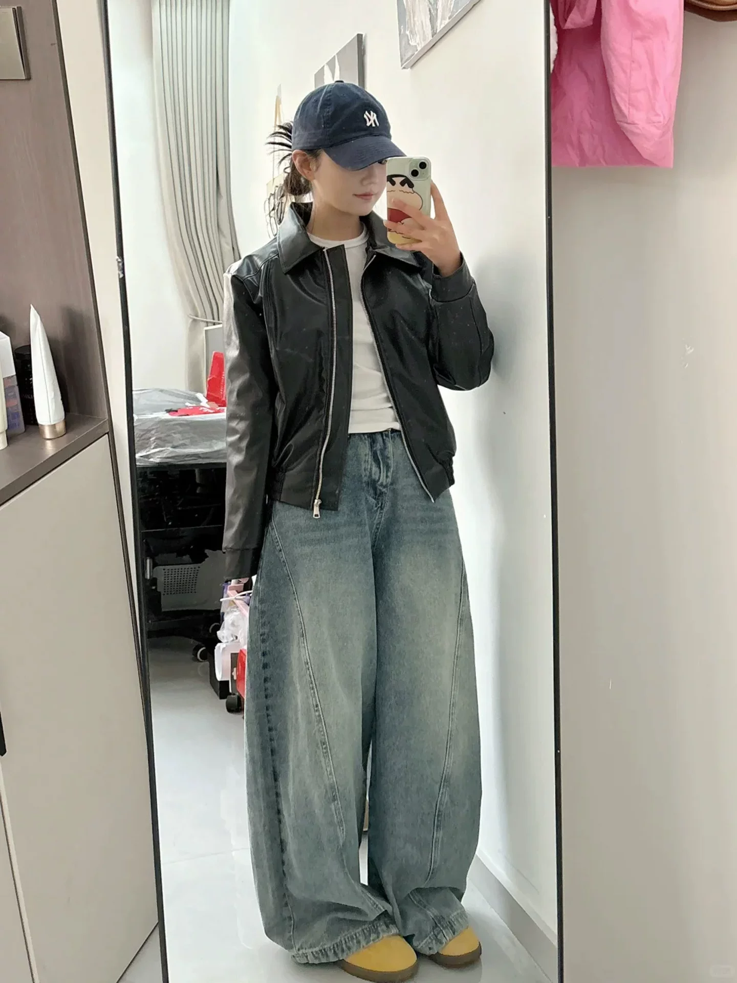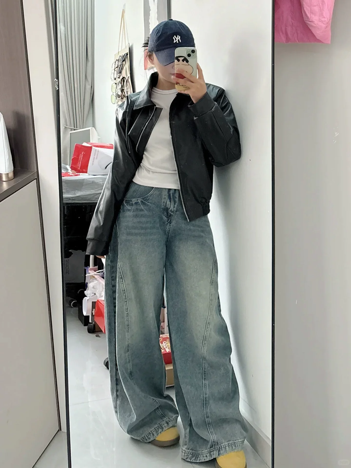 Quần jean nữ kiểu Mỹ, vạt cong, thu đông 2025, size lớn, cạp cao, dáng rộng, tôn dáng, dành cho người có thân hình quả lê, quần ống rộng