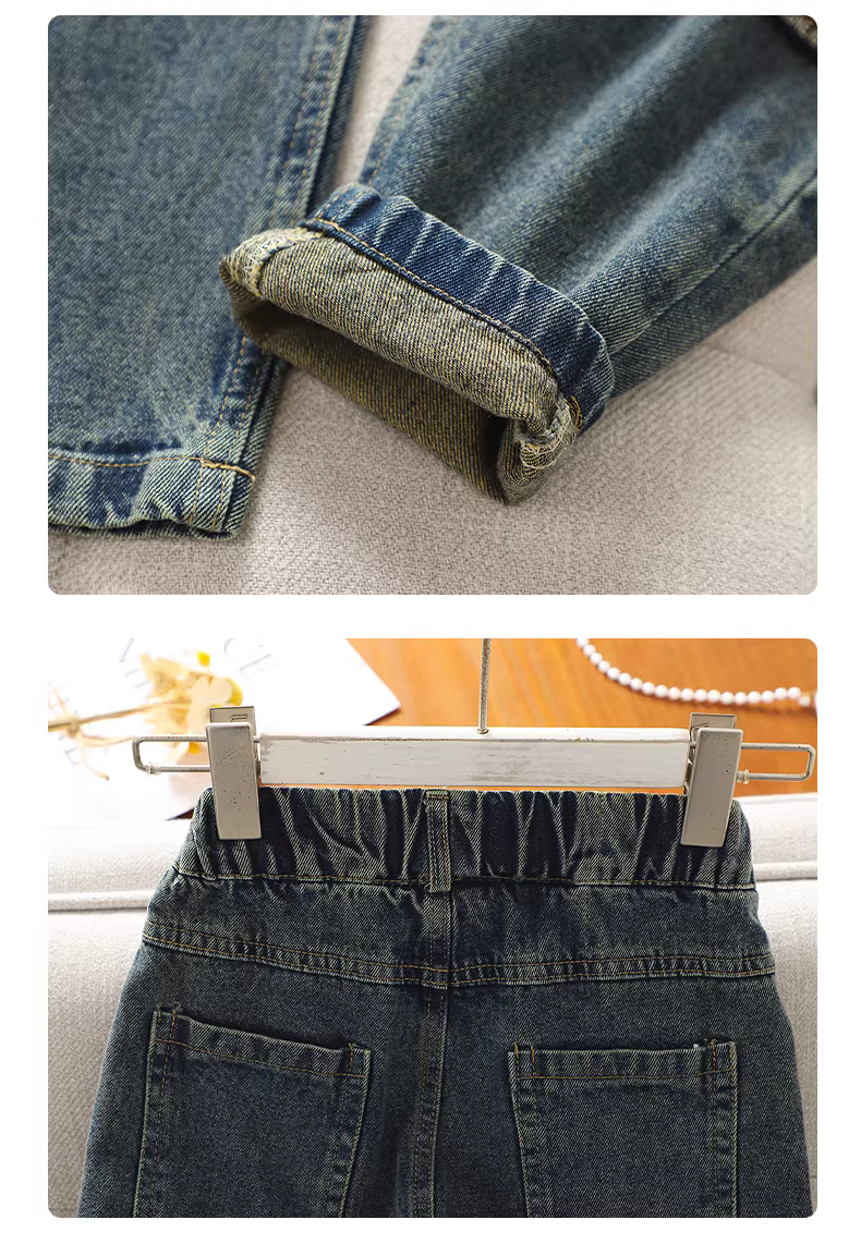- Quần jean nữ, kiểu xuân thu, quần áo trẻ em hợp thời trang, quần kiểu bố, quần mùa thu cho trẻ lớn, quần cà rốt mùa thu.