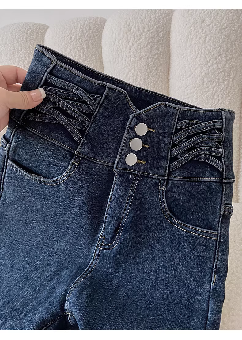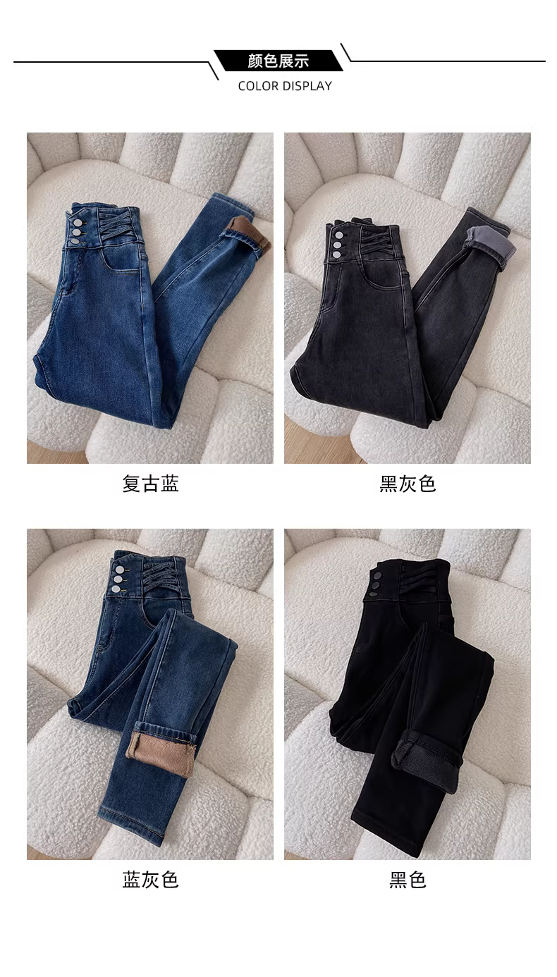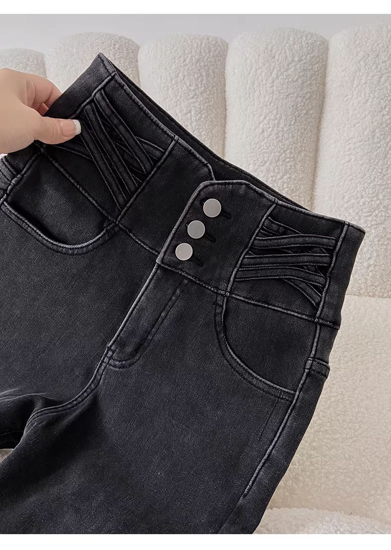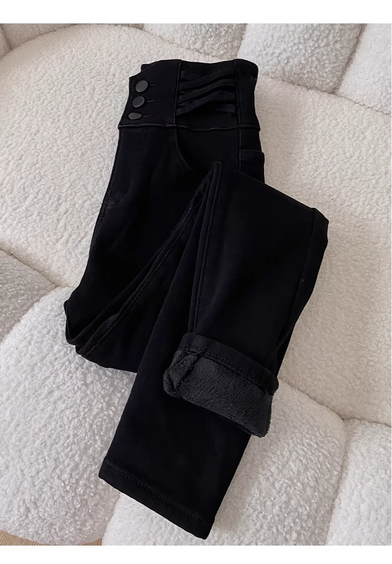 Quần jean nữ La Chapelle cạp cao, lót lông, kiểu dáng ôm sát, mùa thu đông 2025, kiểu dáng mới, quần bút chì dáng nhỏ nhắn.