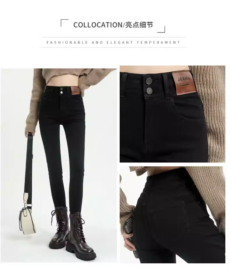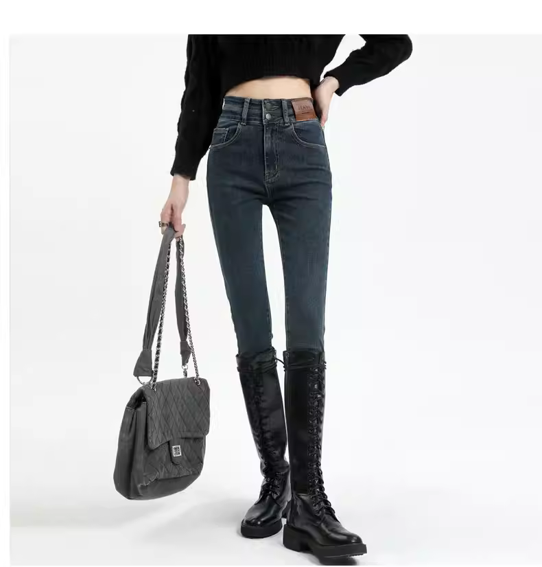 Quần jean nữ La Chapelle kiểu dáng ôm sát, lót lông dày, chất liệu dày dặn, kiểu dáng mới thu đông 2025.