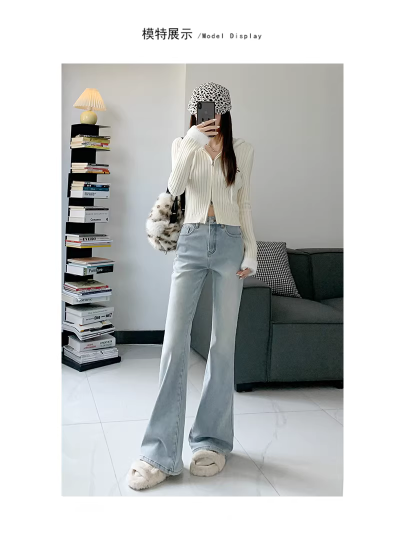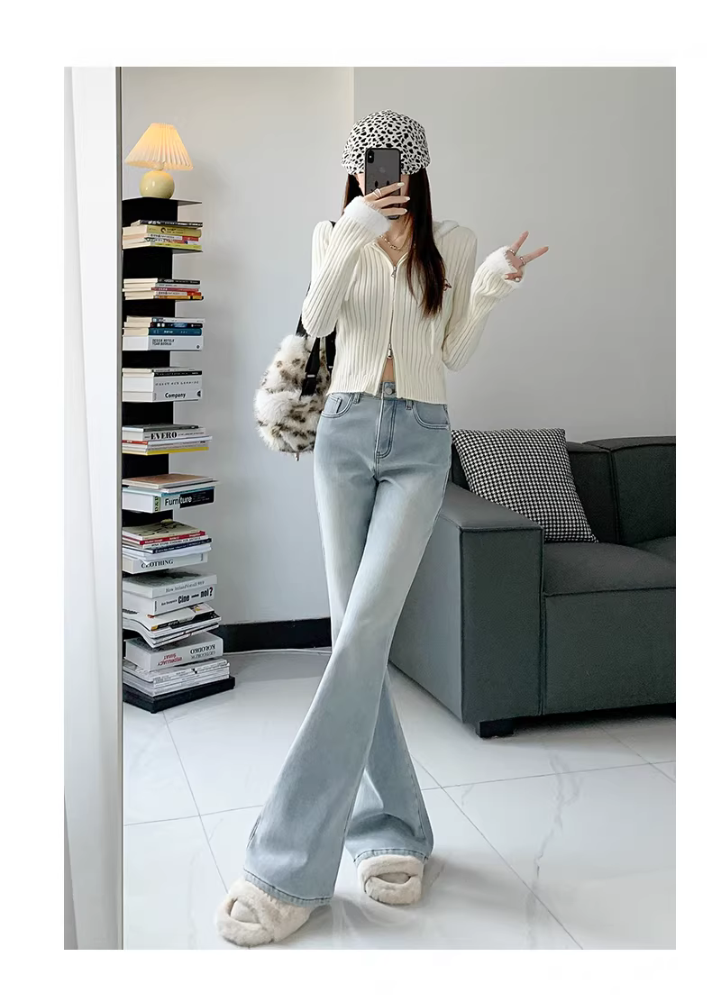 - Quần jean nữ La Chapelle lót lông dày, dáng loe, kiểu mới thu đông 2025, cạp cao, dáng chuông, size nhỏ.