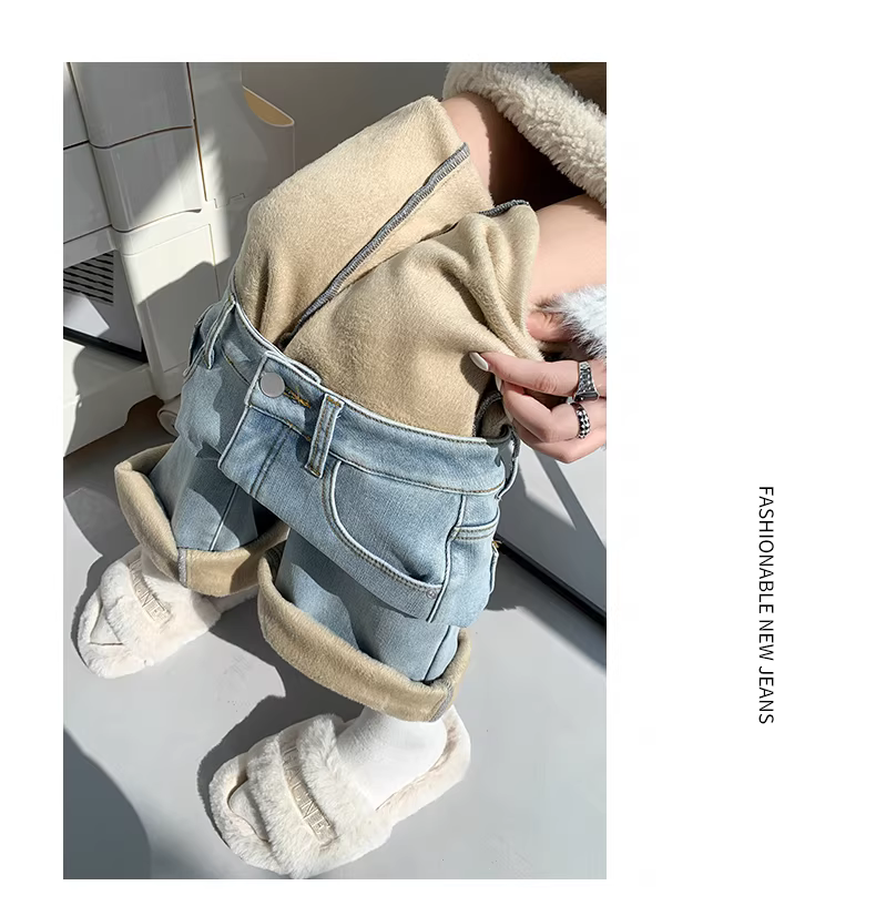 Quần jean nữ La Chapelle lót lông dày, dáng loe, kiểu mới thu đông 2025, cạp cao, dáng chuông, size nhỏ.