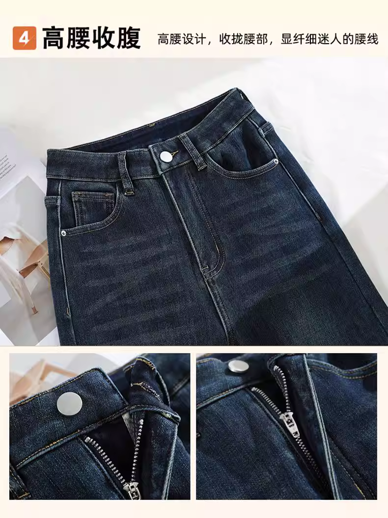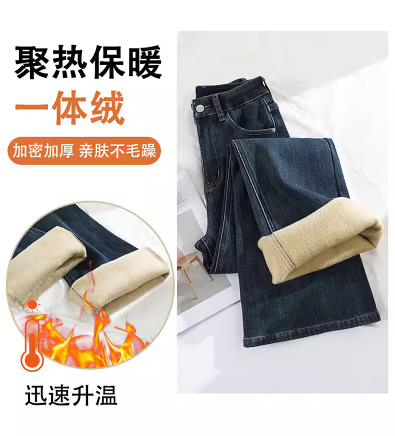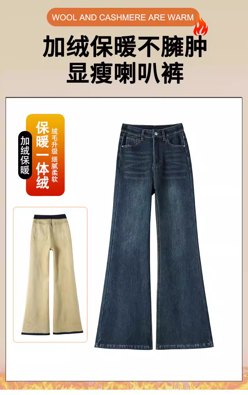 - Quần jean nữ La Chapelle lót lông dày, dáng loe, kiểu mới thu đông 2025, cạp cao, không bó sát.