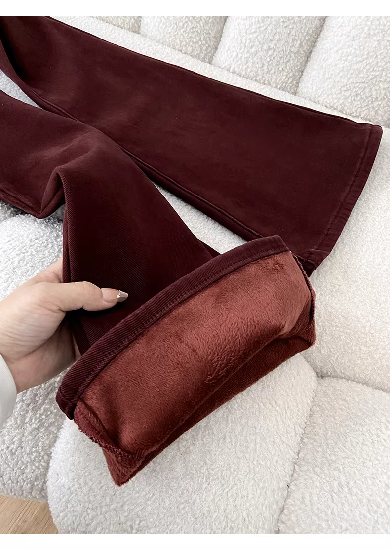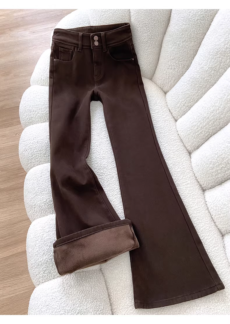 - Quần jean nữ La Chapelle màu cà phê, lót lông cừu, dày dặn, dáng loe, kiểu retro, mùa thu đông 2025