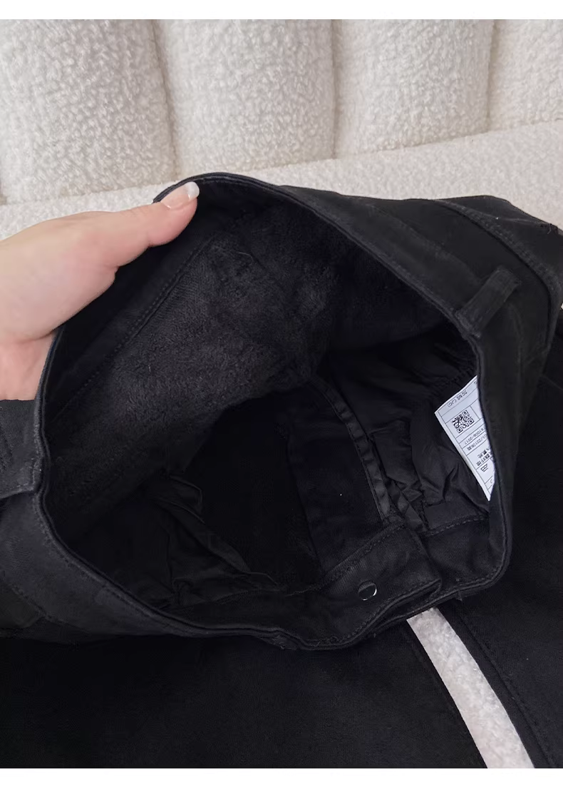- Quần jean nữ La Chapelle màu đen, chất liệu lông cừu, dáng loe, mùa thu đông 2025, cạp cao, tôn dáng, kiểu chuông.