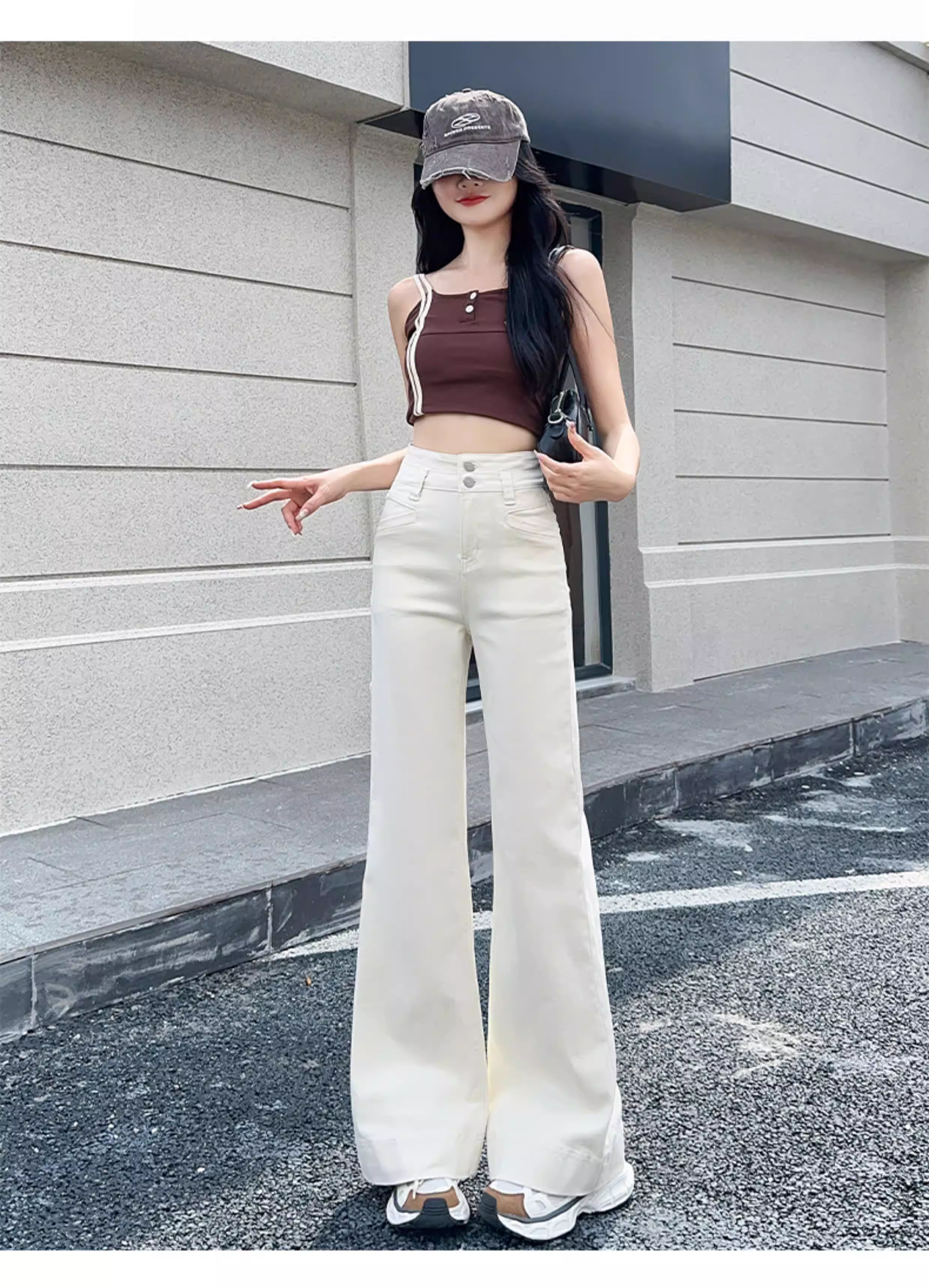 - Quần jean nữ La Chapelle màu denim, dáng loe, cao eo, không bó sát, kiểu bootcut, mới thu đông 2025