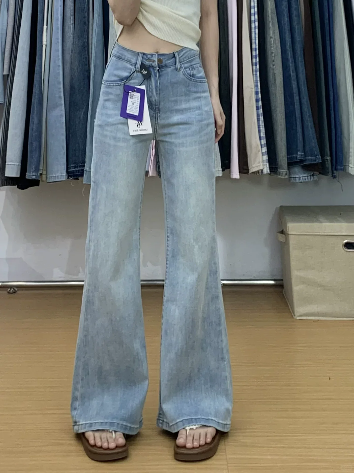 Quần jean nữ màu sáng, không bó sát, hơi loe, kiểu dáng mùa hè mỏng nhẹ, size lớn, cạp cao, rộng rãi, tôn dáng, quần dài loe chất liệu Tencel.