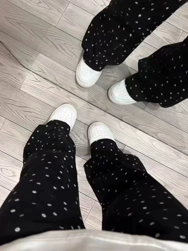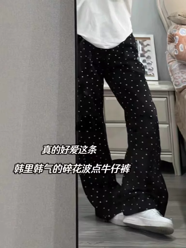 - Quần jean ống đứng chấm bi phong cách Hàn Quốc dành cho nữ, phong cách đầu xuân, cỡ lớn, lưng cao, dáng rộng, giảm béo, dáng quả lê, quần ống rộng