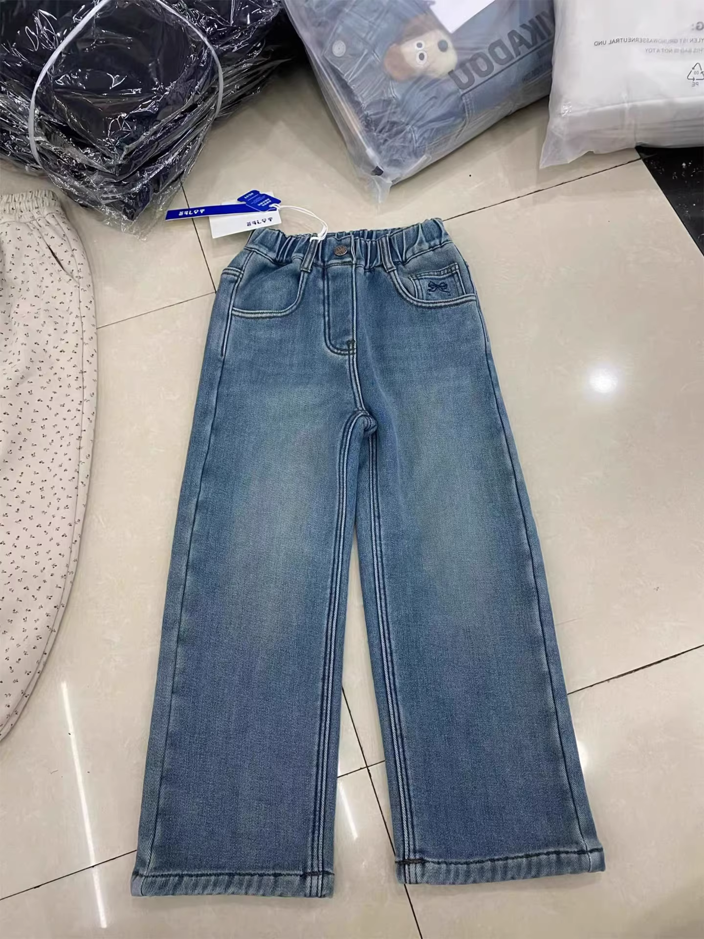 - Quần jean ống đứng chất liệu nỉ một mảnh cho bé gái, kiểu mới mùa đông 2025 dành cho trẻ lớn, phối đồ mẹ và bé, quần ống rộng cho học sinh nữ