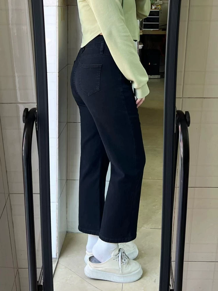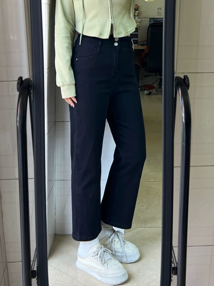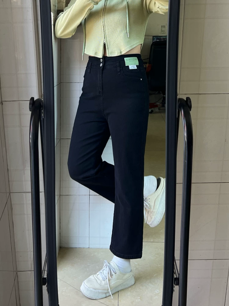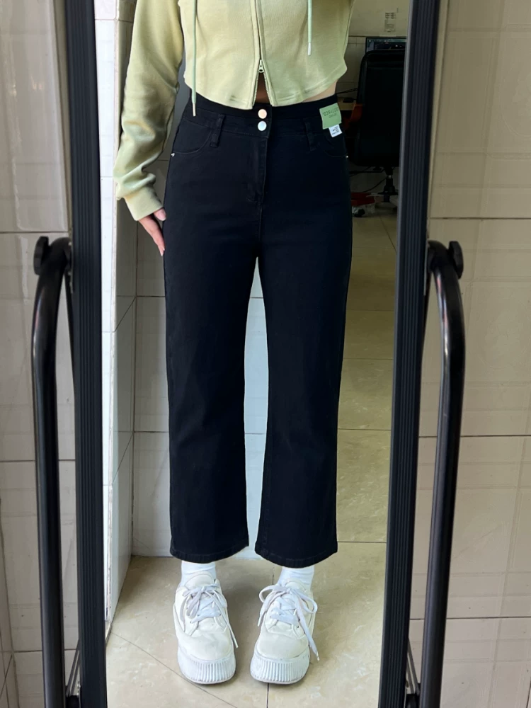- Quần jean ống đứng cho nữ, đầu thu, cỡ lớn, lưng cao, co giãn, che hông, giảm béo, dáng quả lê, quần thuốc lá ngắn