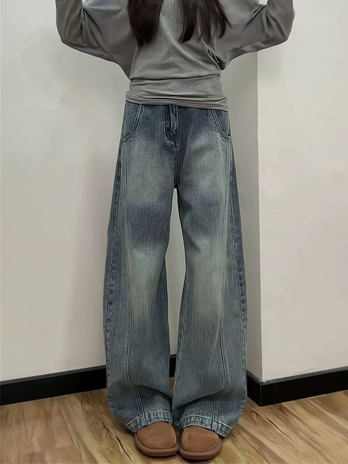 - Quần jean ống đứng cổ điển dành cho nữ, phong cách mùa thu mới, cỡ lớn, lưng cao, dáng rộng, thon gọn, nhỏ nhắn, quần ống rộng cong.